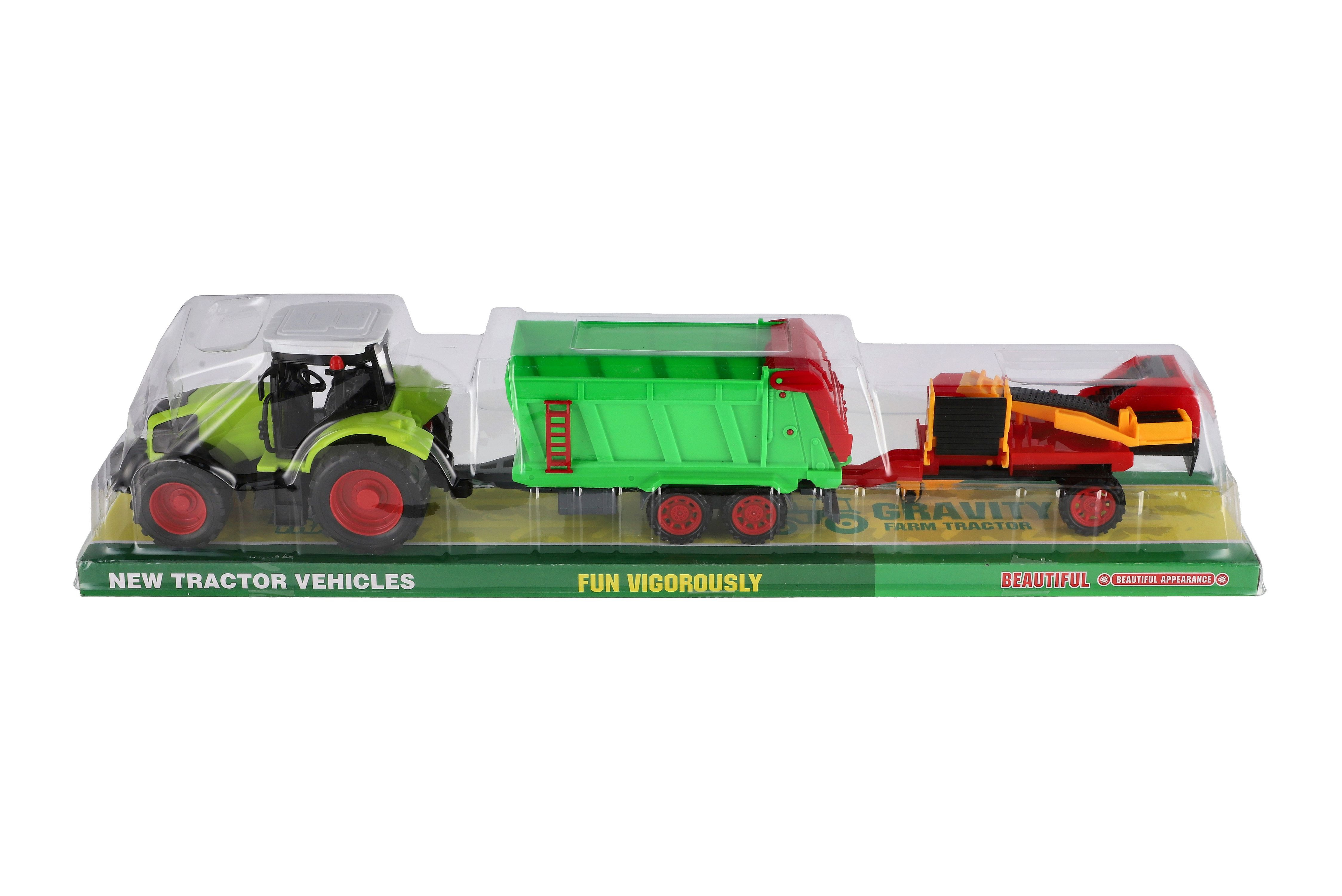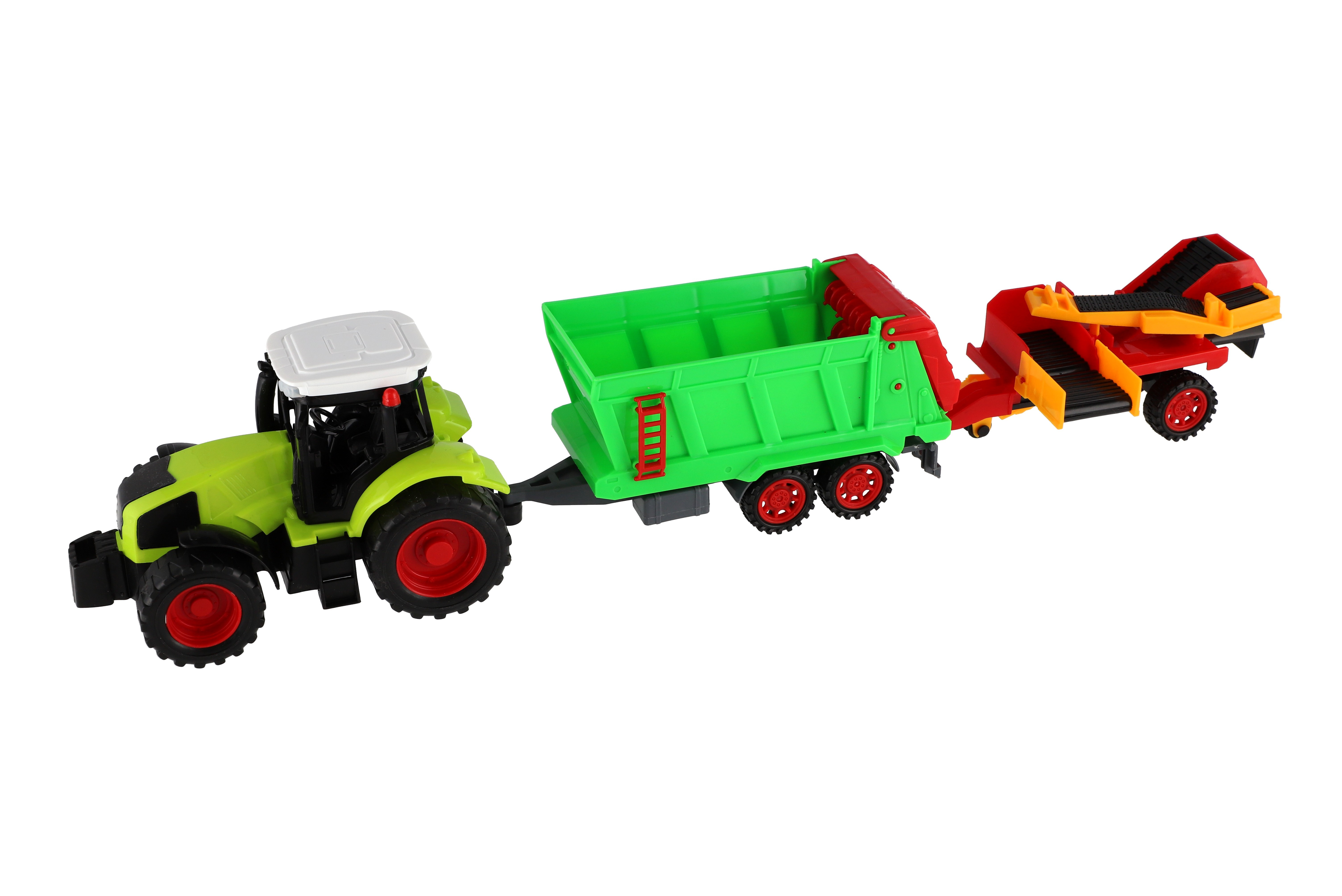 Traktor s vlekem s rotavátorem plast 52cm na setrvačník 2 barvy v blistru