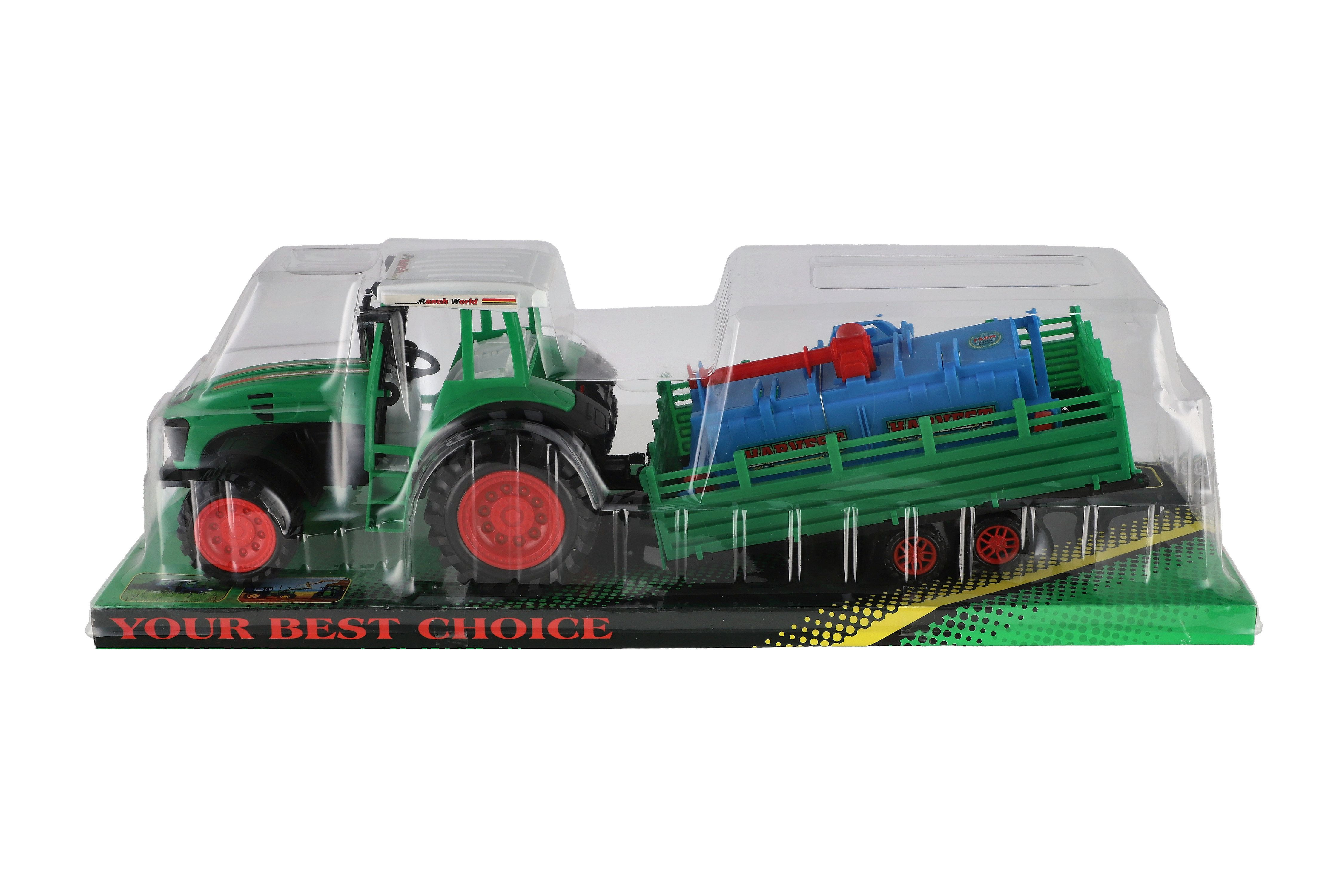 Popis Traktor s vlekem s rotavátorem plast 52cm na setrvačník 2 barvy v blistru