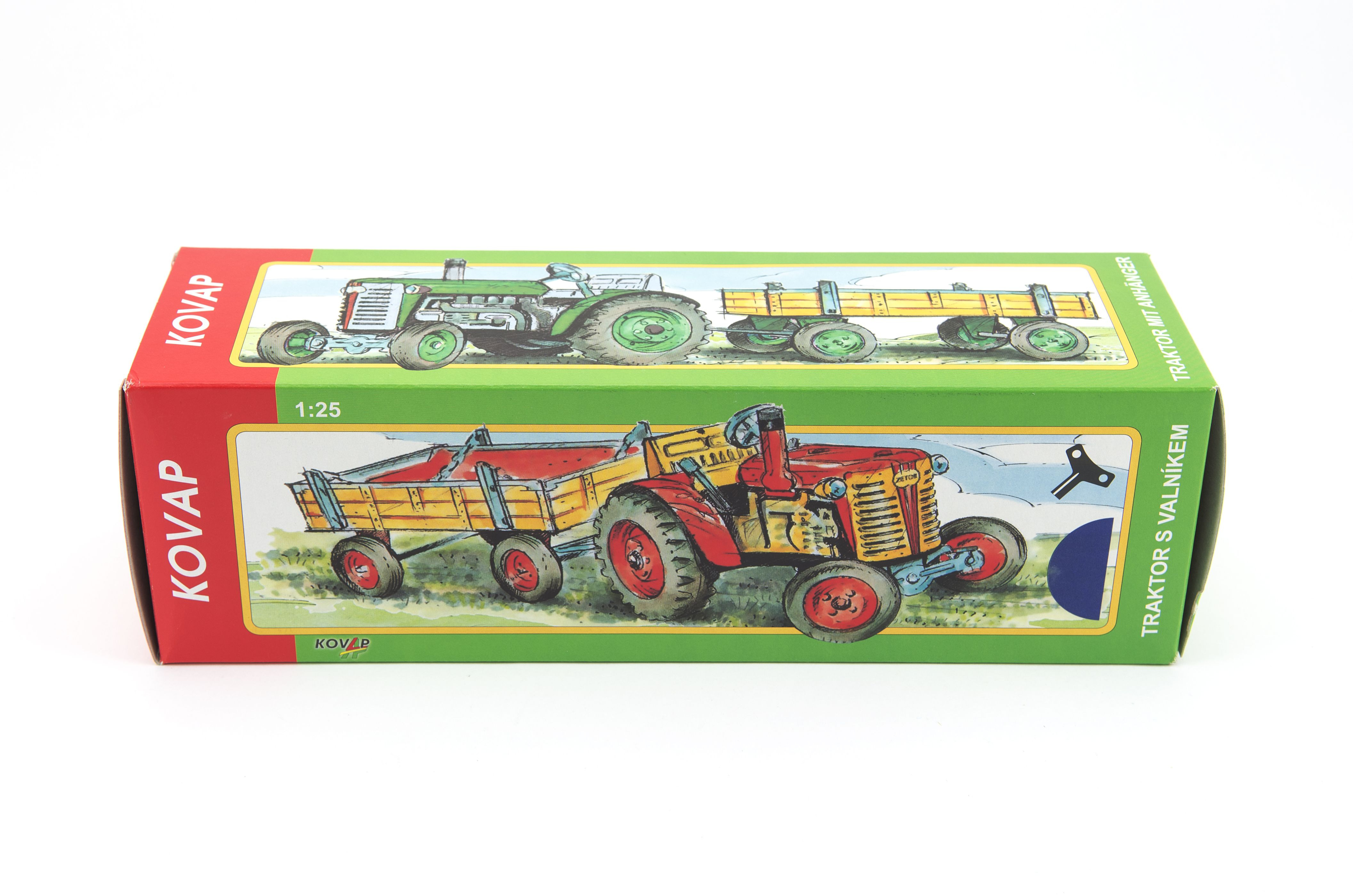 Popis Kovap Traktor Zetor s valníkem modrý na klíček kov 28cm