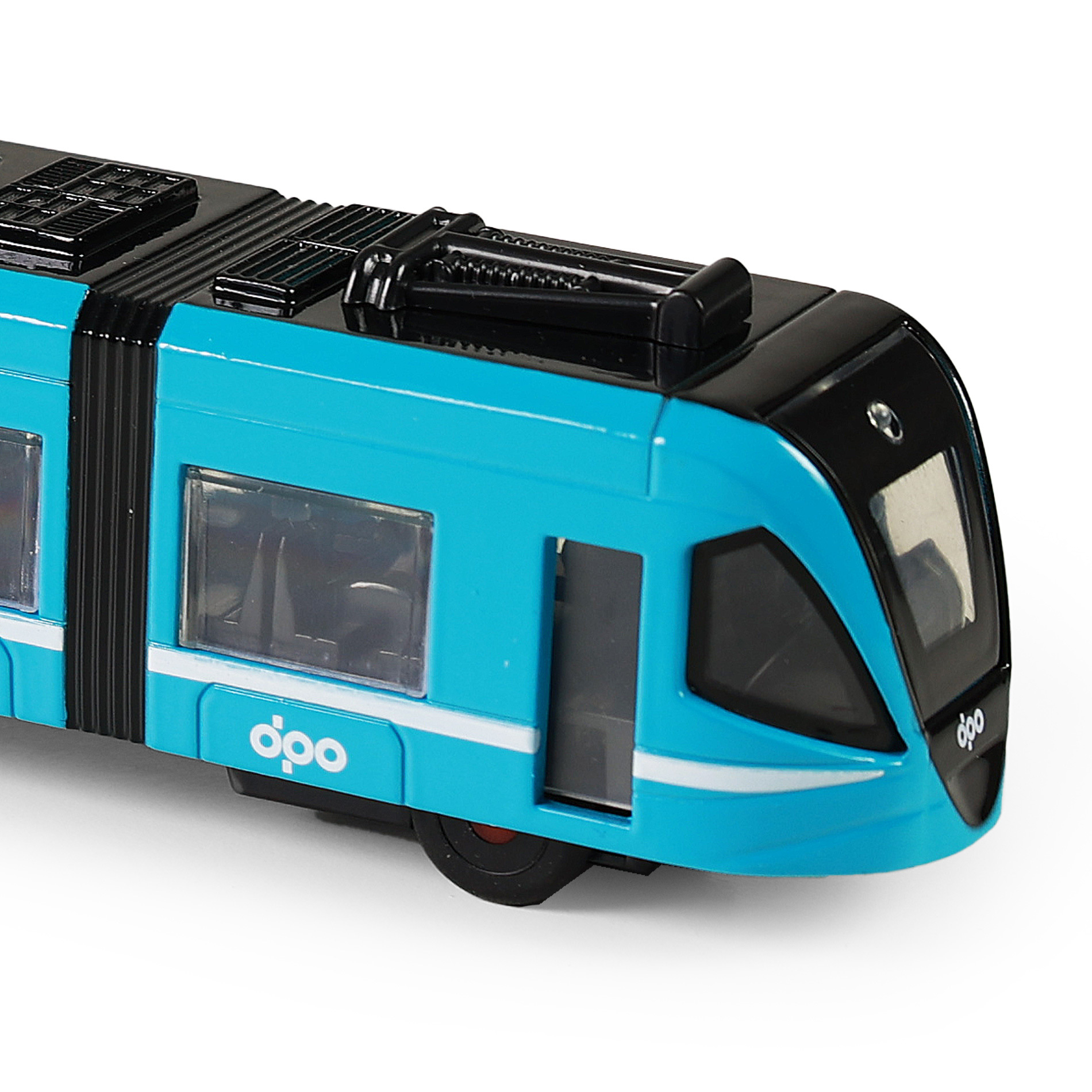 Moderní tramvaj v modré barvě, která jezdí na zpětný chod je perfektním dárkem pro všechny tramvajové nadšence. Dveře na jedné straně vozu lze manuálně otevřít a zavřít pomocí pantografu na střeše vozu. Tramvaj je vyrobená z kovu, je dlouhá 23 cm a je velmi podobná tramvaji, která jezdí ulicemi v Ostravě. Tato hračka byla vyrobena ve spolupráci s Dopravním podnikem města Ostravy a městem OSTRAVA!!!