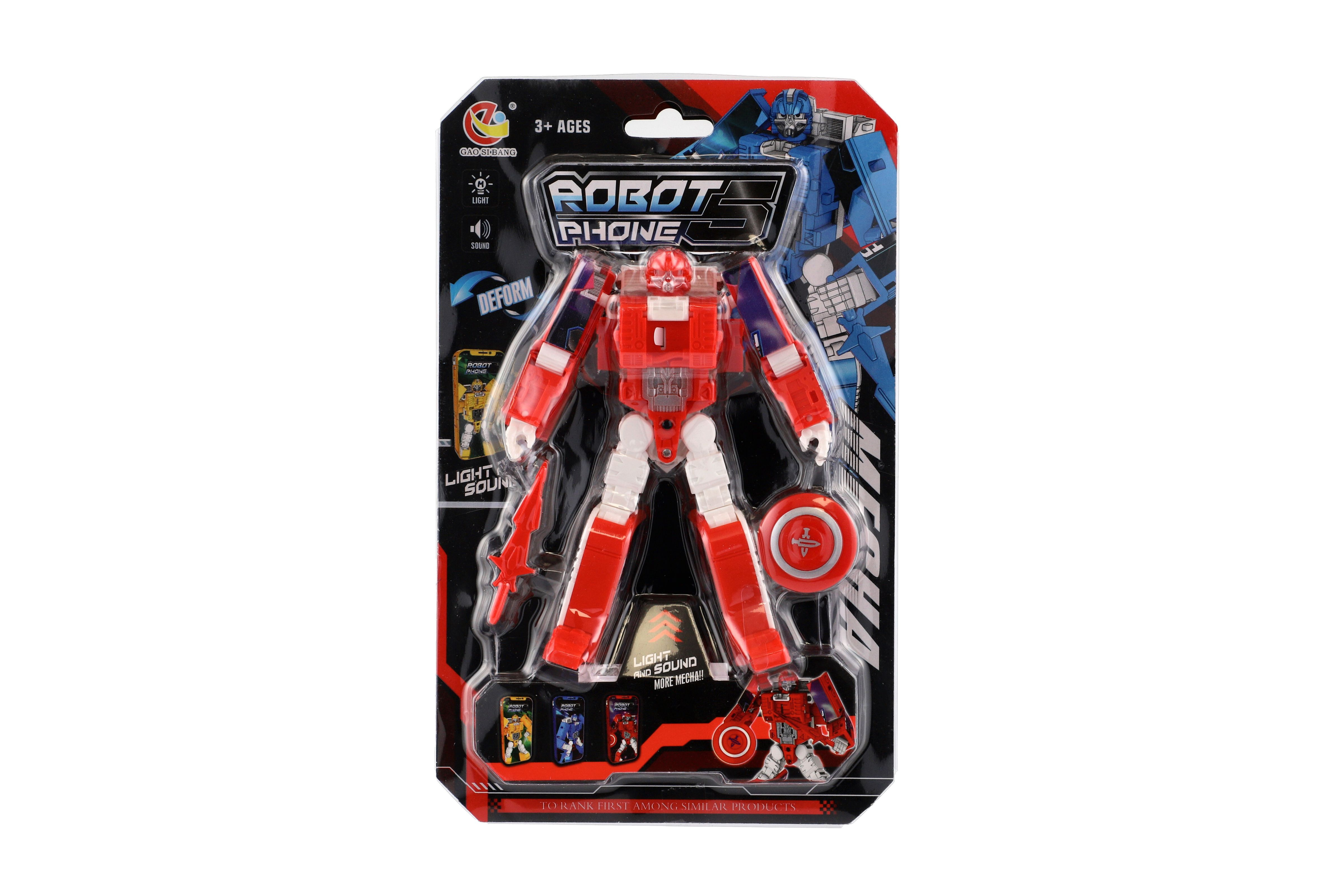 Teddies Transformer robot/telefon plast 14cm na baterie se zvukem, světlem 3 barvy na kartě