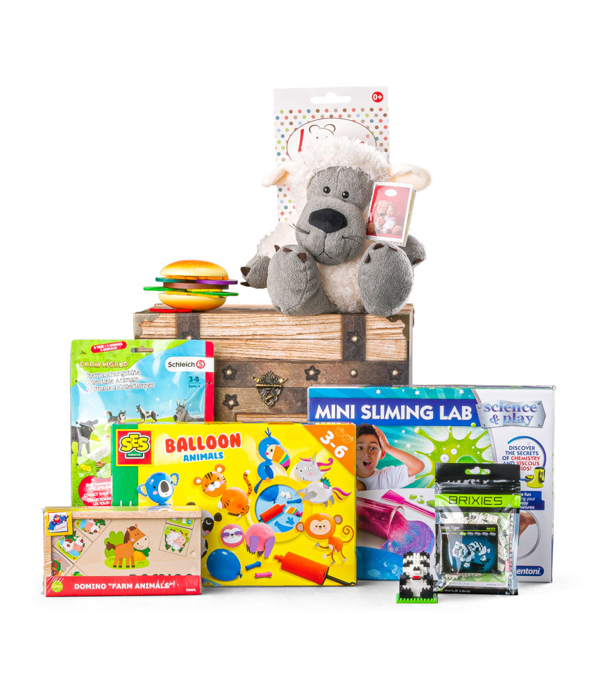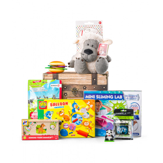 Obsahem truhly je celé spektrum zábavy pro děti: najdou v ní spoustu hraček podporujících rozvoj kreativity, jemné motoriky i fantazie od značky SES, soutěživost podpoří společenská hra, radost udělá i stavebnice a plyšové pomazlení.