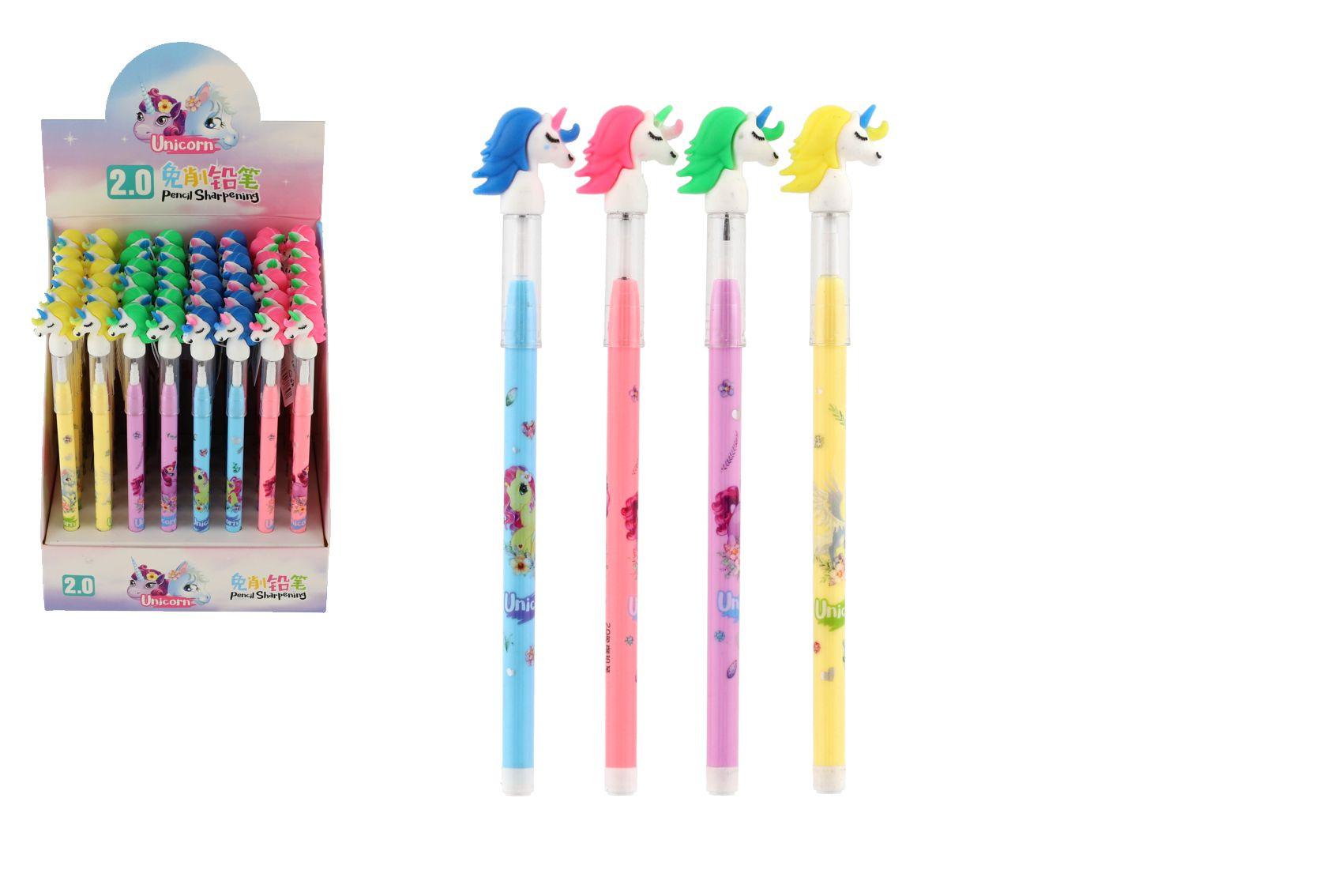 Teddies Tužka obyčejná jednorožec plast s vyměnitelnými hroty 10ks 4 barvy 48ks v boxu