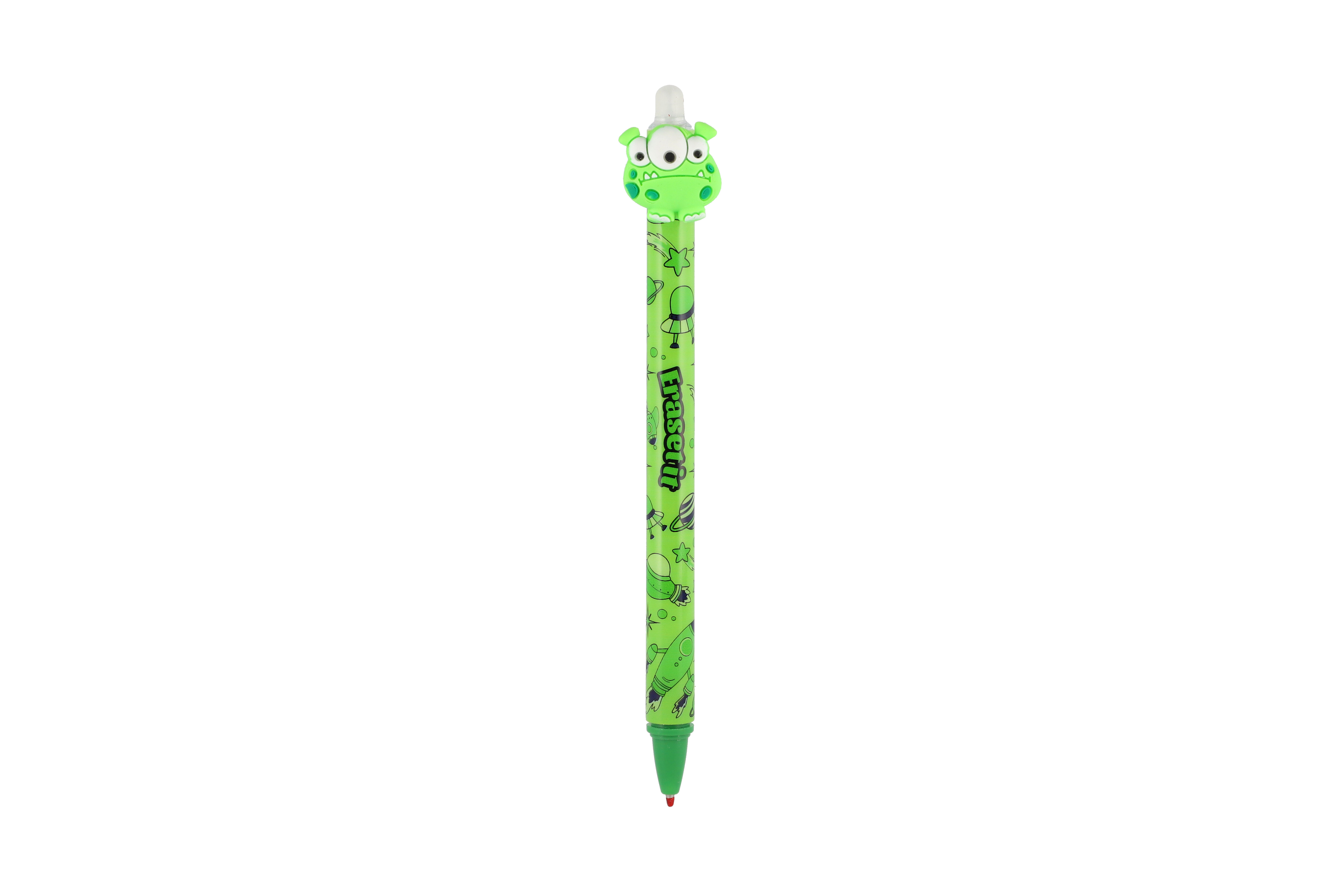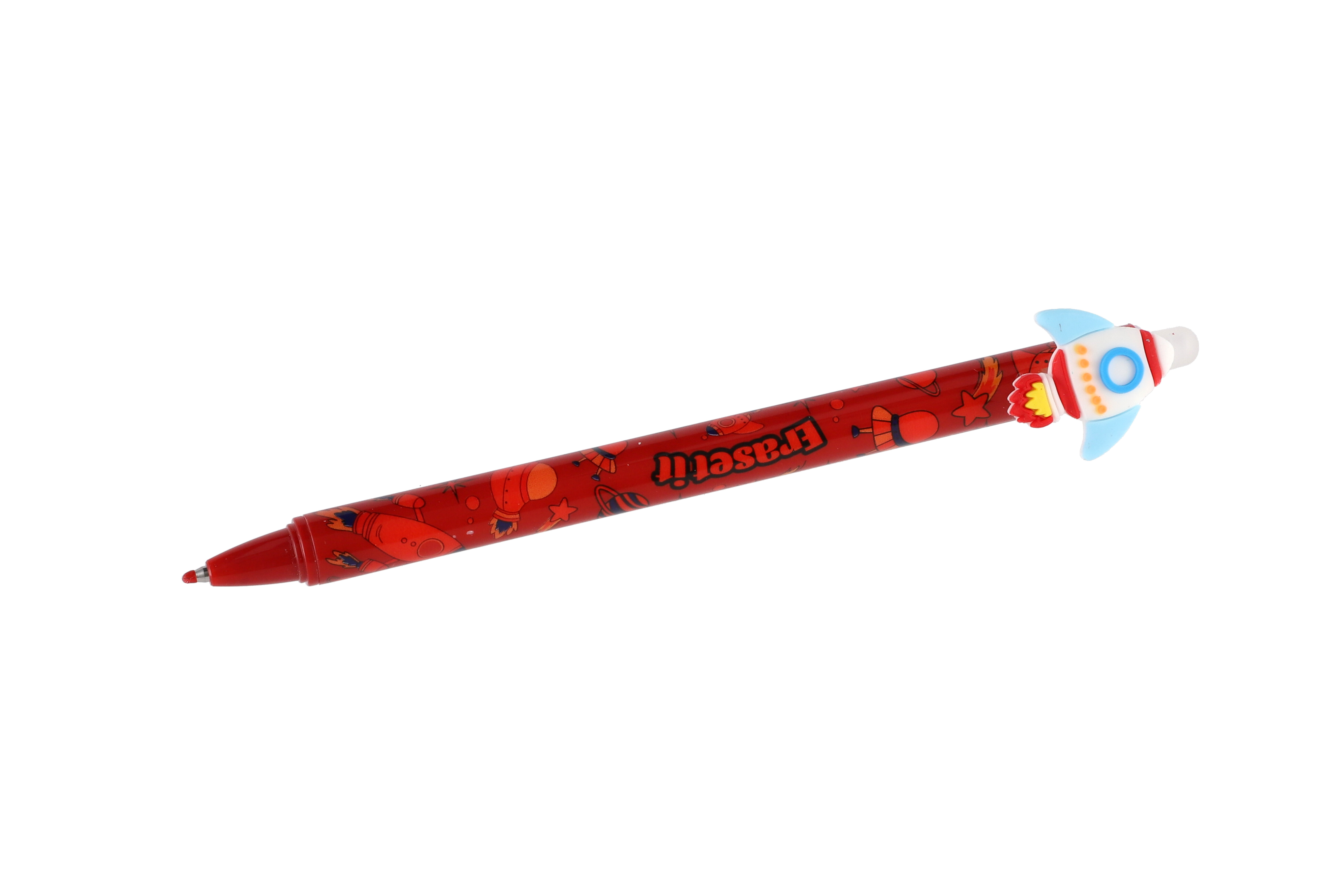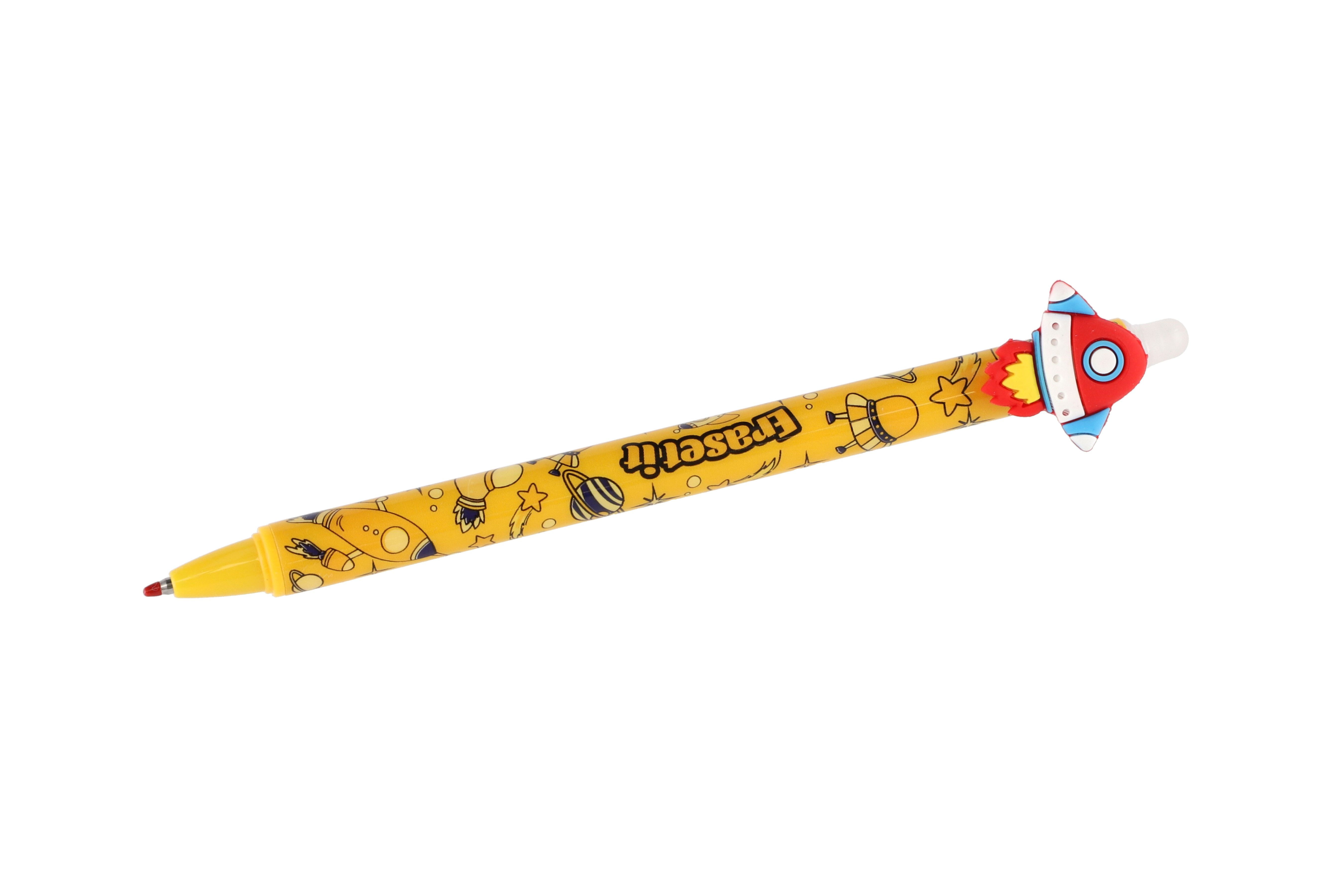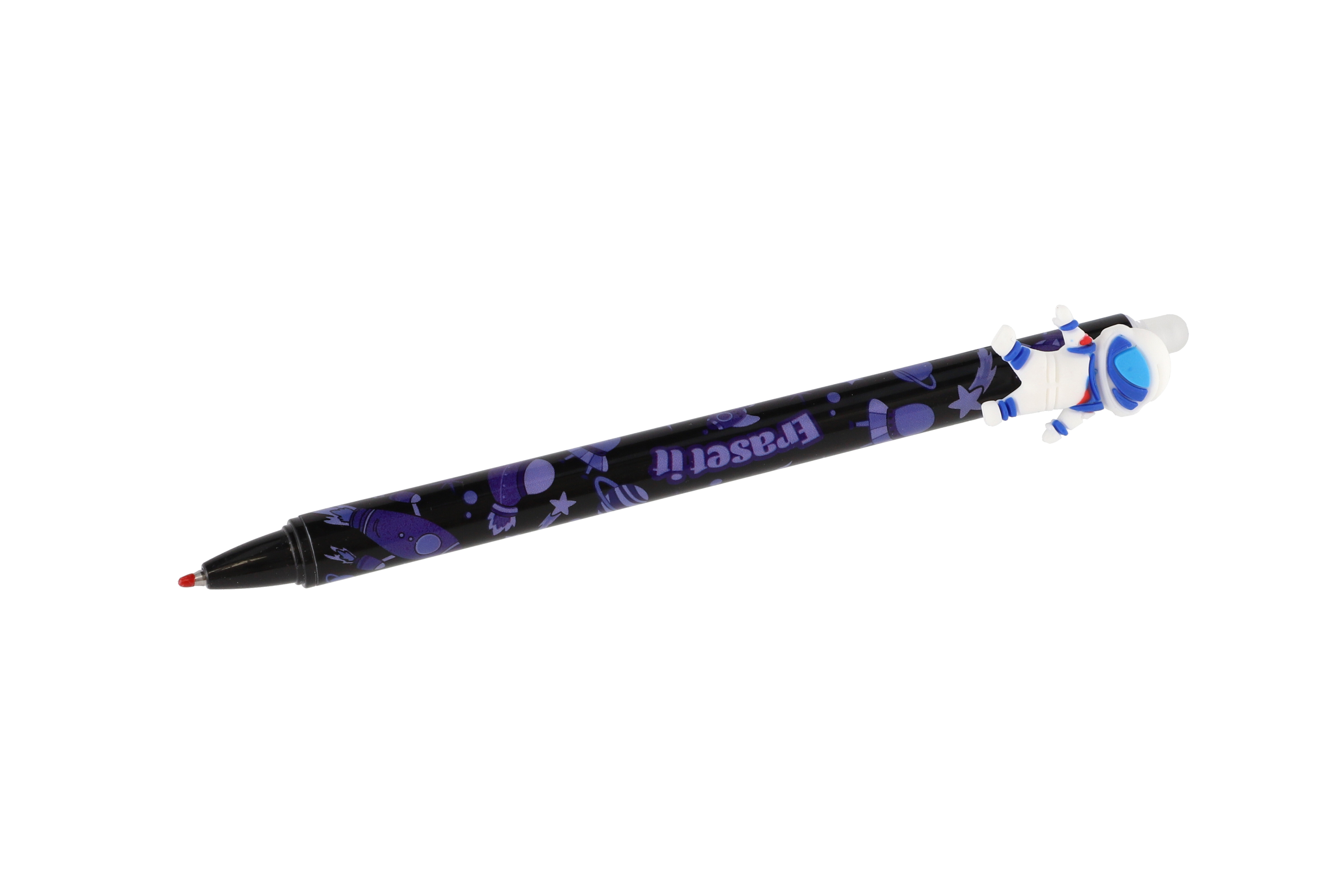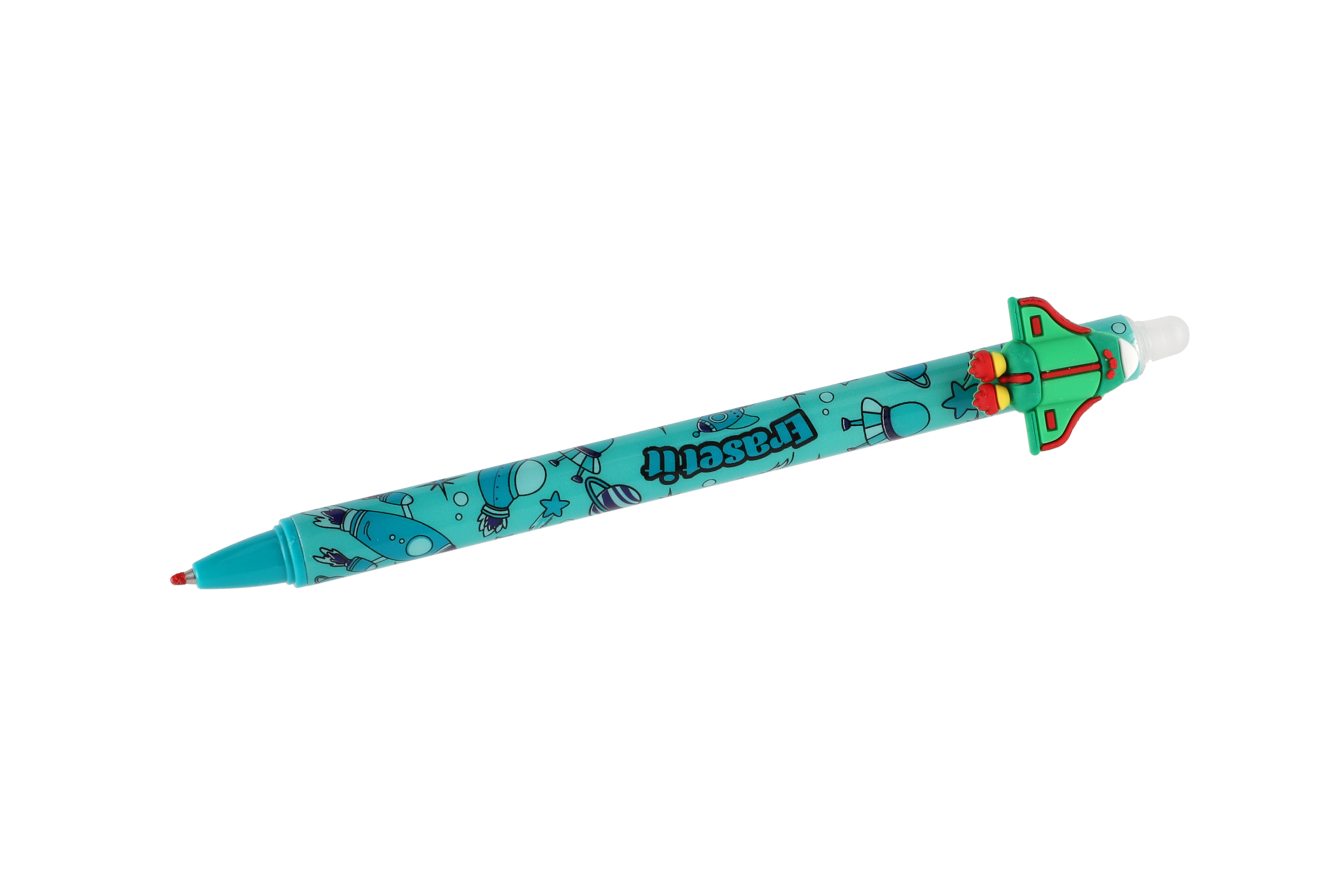 Jedinečný gumovatelný modrý inkoust, který lze gumovat pomocí speciální gumy na konci pera. Tloušťka hrotu - 0,5 mm, jemné psaní. Velikost pera 14,5 cm