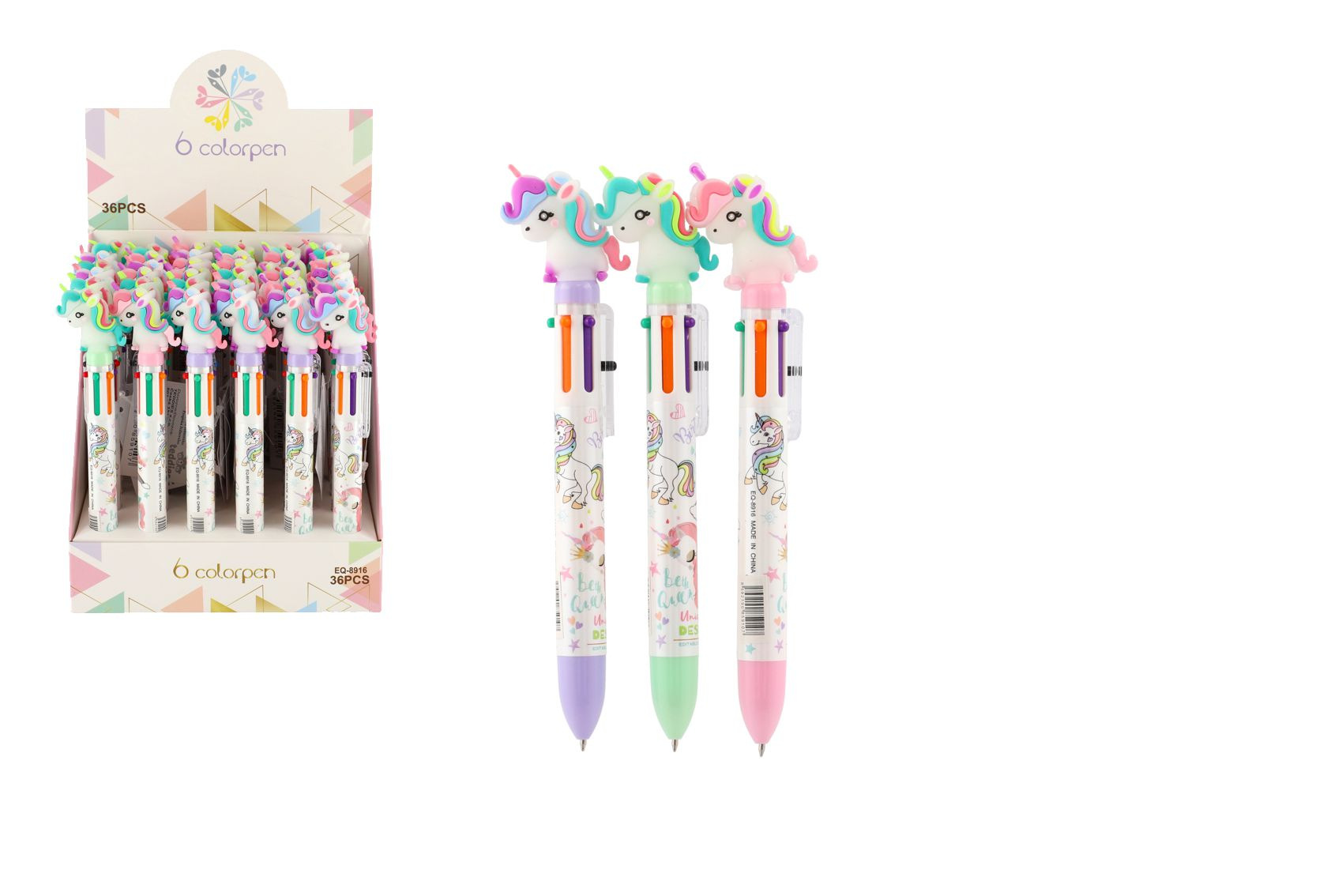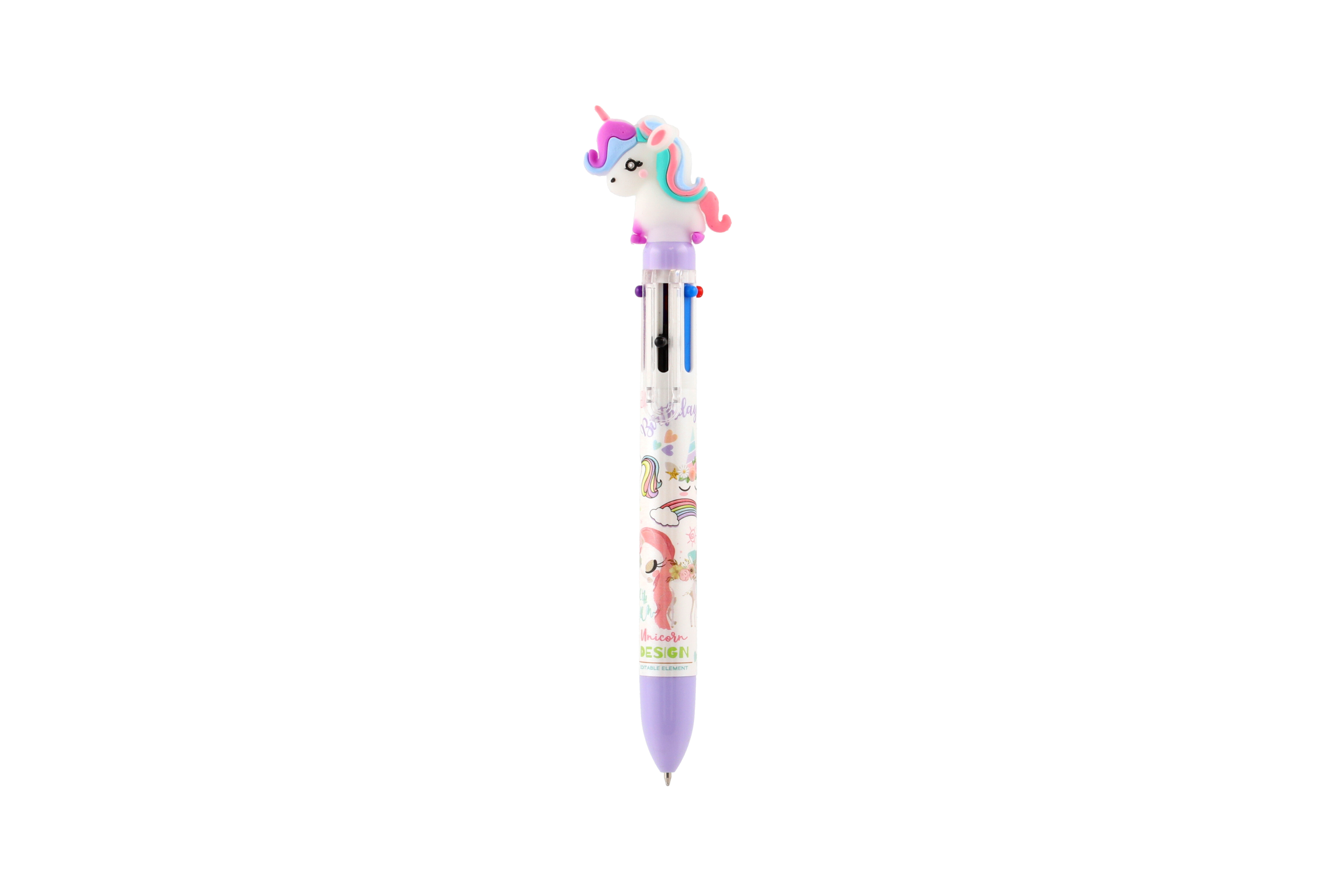 Nápaditá propiska s motivem jednorožce prostě baví! Uvnitř se ukrývá 6 barevných tuh, které lze libovolně měnit. Děti si ji oblíbí jak do školy, tak na doma. Změň barvu stlačením. Rozměry výrobku 4 x 14 x 1,5 cm