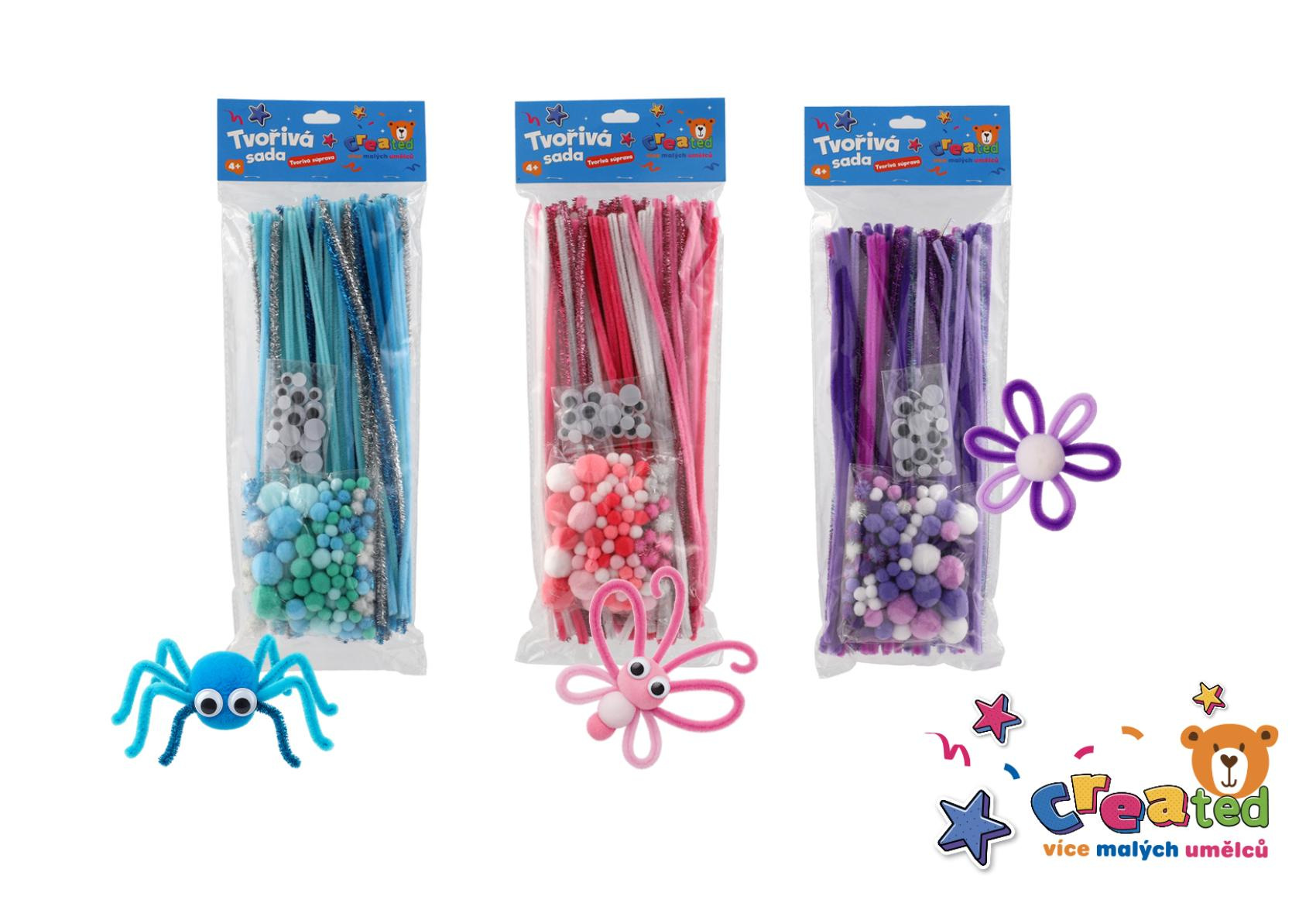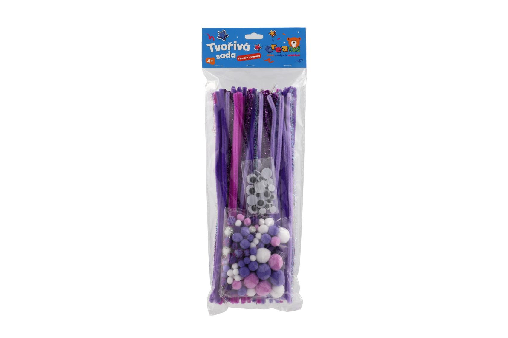 Zábavné i naučné tvoření pro děti. Podpořte dětskou fantazii a jemnou motoriku s barevnou tvořivou sadou. Sada obsahuje vše potřebné pro výrobu zvířátek, květin, postaviček či ozdob – ideální pro školky, výtvarné dílny i domácí tvoření. Vyberte si z různých barevných variant (modrá, růžová, fialová).