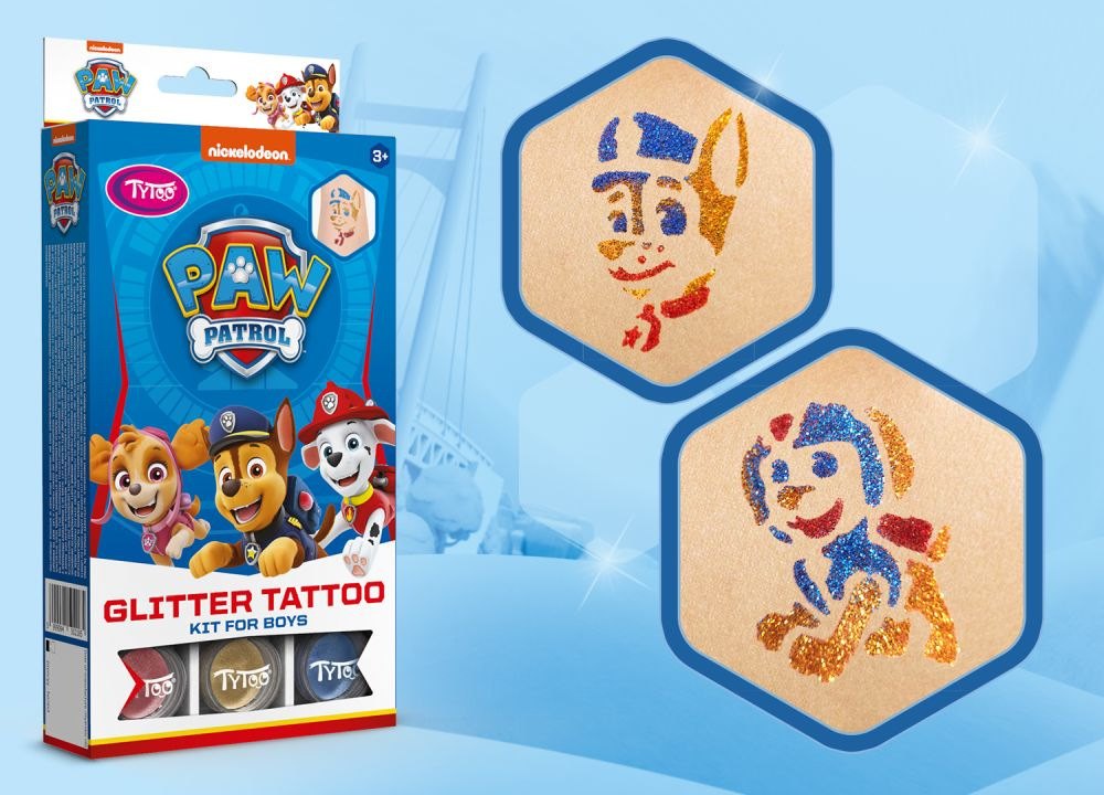 Téměř každé dítě je fanouškem Tlapkové patroly, ve které postavy v každé epizodě hrdinně zachraňují ty, kteří se ocitli v nesnázích. \n\nBalení obsahuje vzory oblíbeného filmu s licencí Tlapkové patroly. \n\nVzory: 12 ks. Barva: 3 ks.\n\nVzor obvykle vydrží na kůži 8 – 18 dní. Délka této doby do velké míry závisí na typu kůže a míře opatrnosti, s jakou k tetování přistupujete. Třpytivé tetování je odolné vůči vodě, dá se však lehce odstranit alkoholem nebo dětským olejíčkem.\n\nPřejeme vám hodně zábavy!