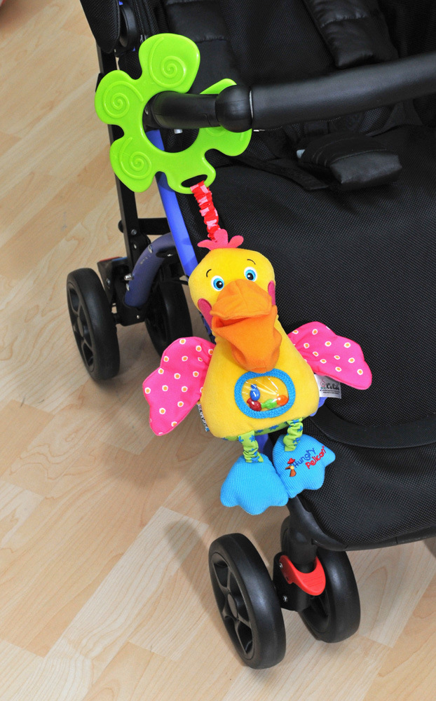Mačkací a pískací pejsek je vybaven praktickým úchytem na kočárek. Je možné prát ho v pračce při teplotě 30ti stupňů. Samotný úchyt je pak možné použít i jako kousátko.