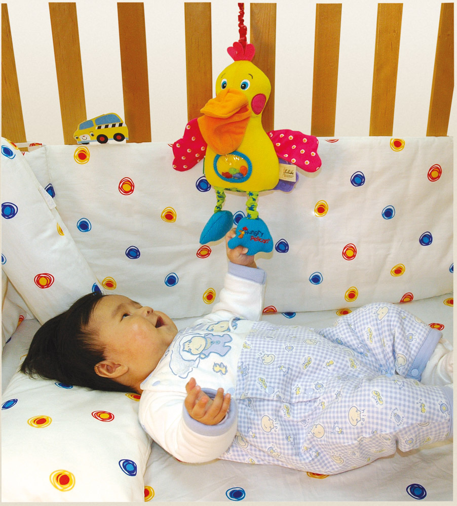 Hračka je vhodná pro nejmenší děti. Podporuje nejen jejich zrakové vjemy různorodou barevností, ale i hmat a sluch, kdy tělíčko je sešito z různých materiálů a při osahávání šustí a chrastí. Hračku můžete zavěsit do kočárku nebo na postýlku.