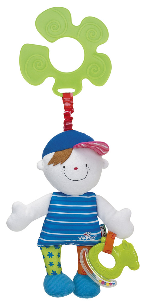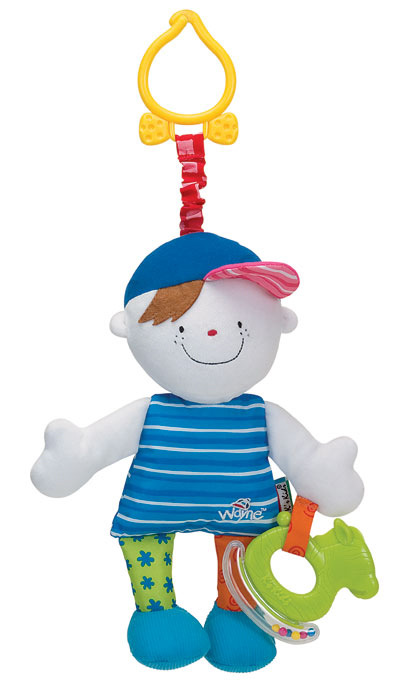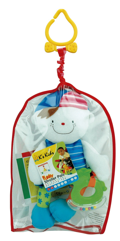 Mačkací a pískací pejsek je vybaven praktickým úchytem na kočárek. Je možné prát ho v pračce při teplotě 30ti stupňů. Samotný úchyt je pak možné použít i jako kousátko.