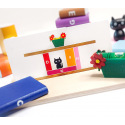 Obsah balení: 40 karet výzev 12 dřevěných knih 2 dřevěné poličky 1 kočička 1 vodováha česká a slovenská pravidla
