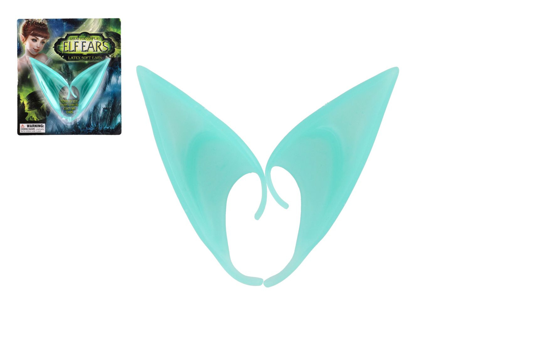 Uši/ucho elfí 2ks latex 12cm tyrkysové na kartě karneval