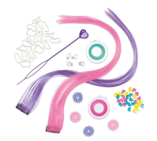 Obsah balení: 2 křídové pudřenky na vlasy, 2 barevné rozšíření vlasů, 30 korálků, 4 tkaniny s korálky, perlička, 20 pásků, anglický průvodceUPOZORNĚNÍ Nevhodné pro děti do 3 let. Obsahuje malé části - nebezpečí udušení. Obal není hračka, před použitím produktu ho odstraňte z dosahu dítěte, může způsobit zadušení.