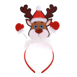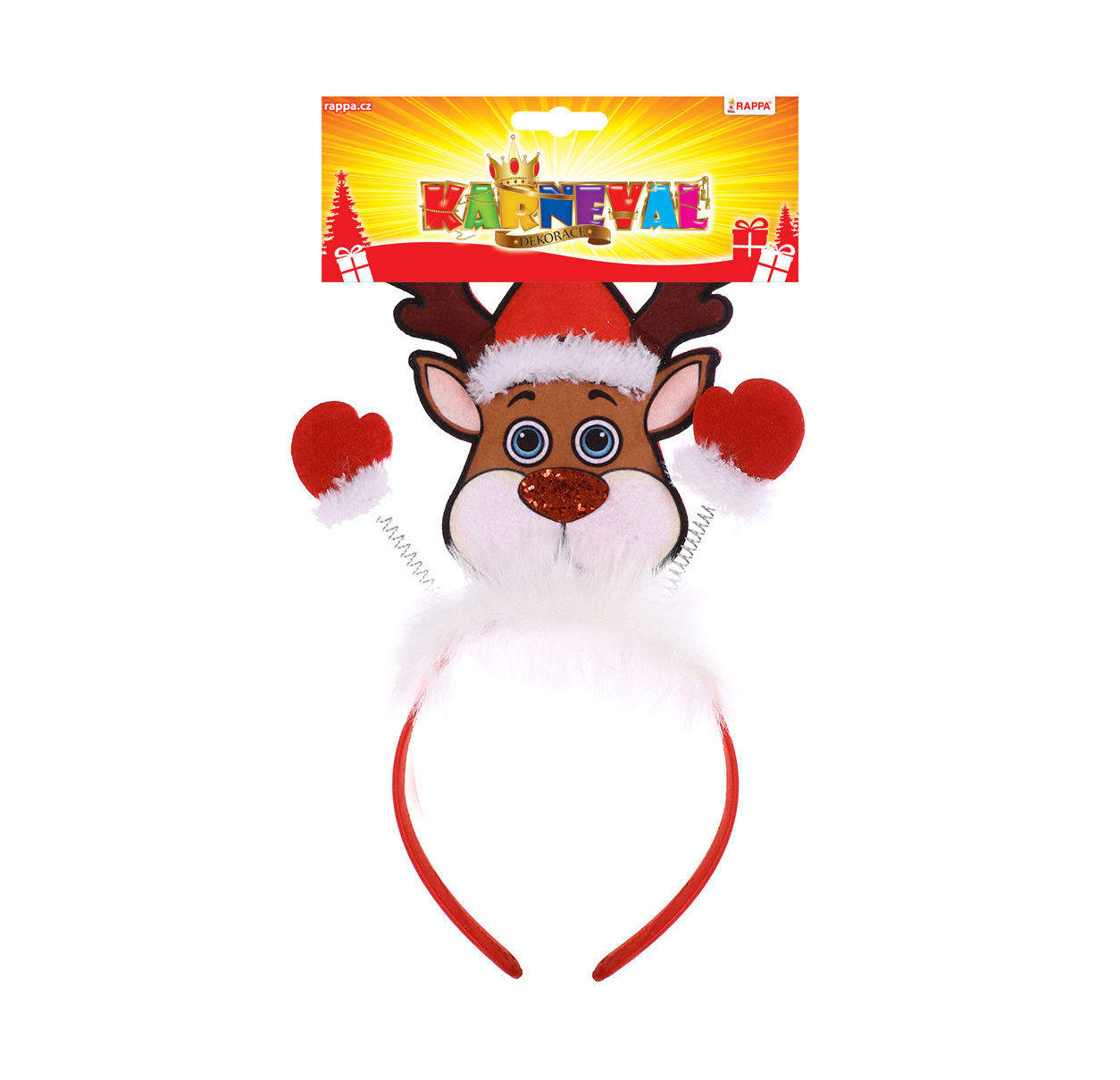 Roztomilá čelenka se sobem pro děti dodá Vánocům tu pravou atmosféru! Červená saténová čelenka zdobená bílým chmýřím s anténkami mezi kterými vykukuje nezbedně sobík s třpytivým nosem.