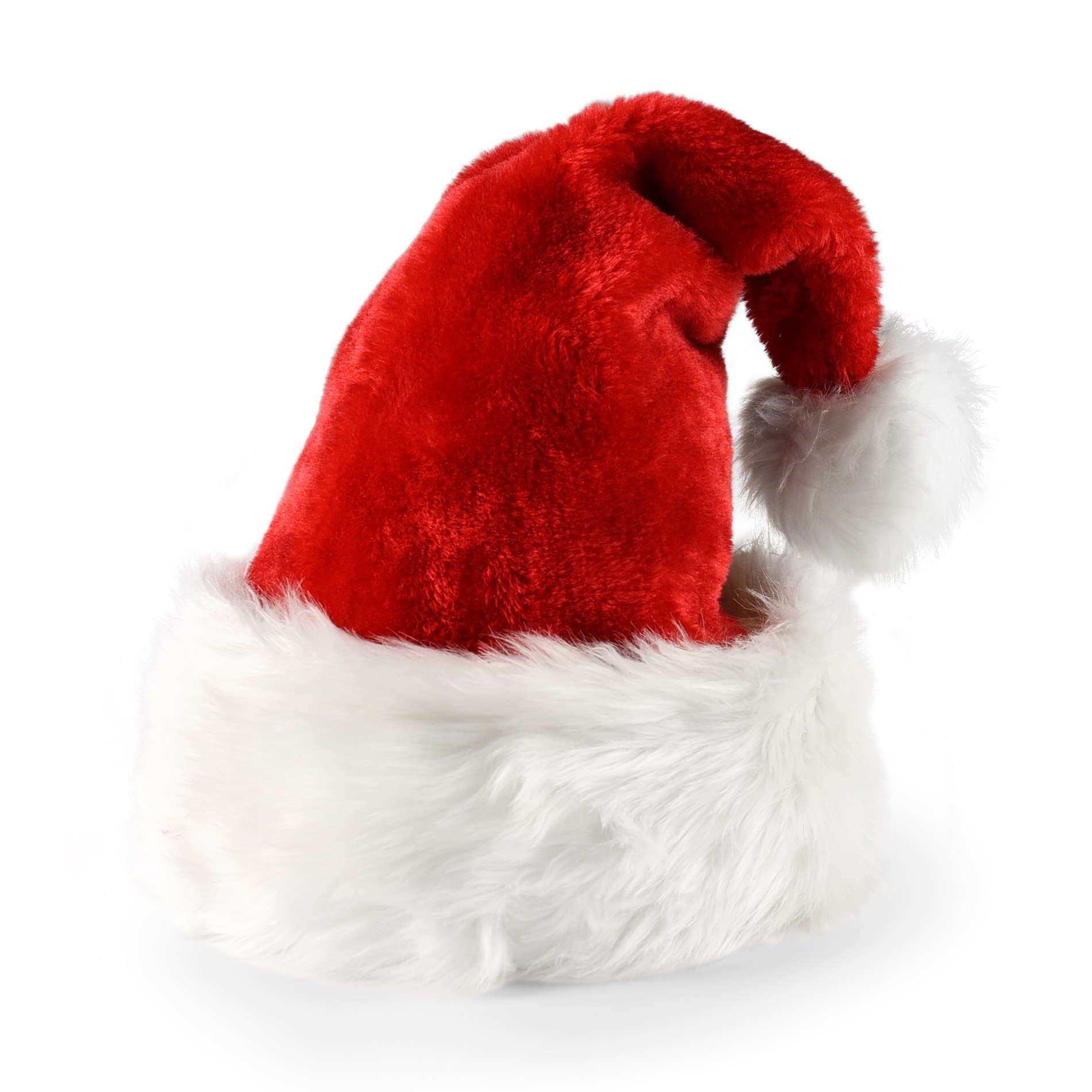 Klasická červená vánoční čepice s bílým lemem a bambulkou je ideálním doplňkem pro vánoční období, jak ke kostýmu, tak i pro domácí pohodu. Hebký plyšový materiál zajistí pohodlné nošení a sváteční vzhled.