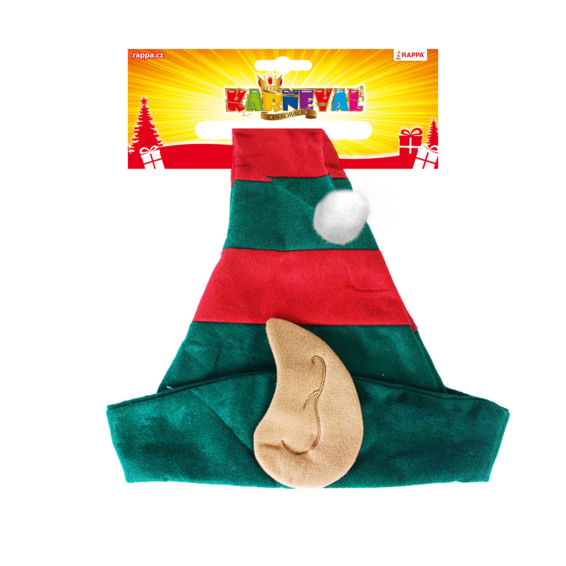 Vánoční červeno-zelená čepice v elfím stylu. Perfektní doplněk ke kostýmu nebo jen tak na vánoční večírek!