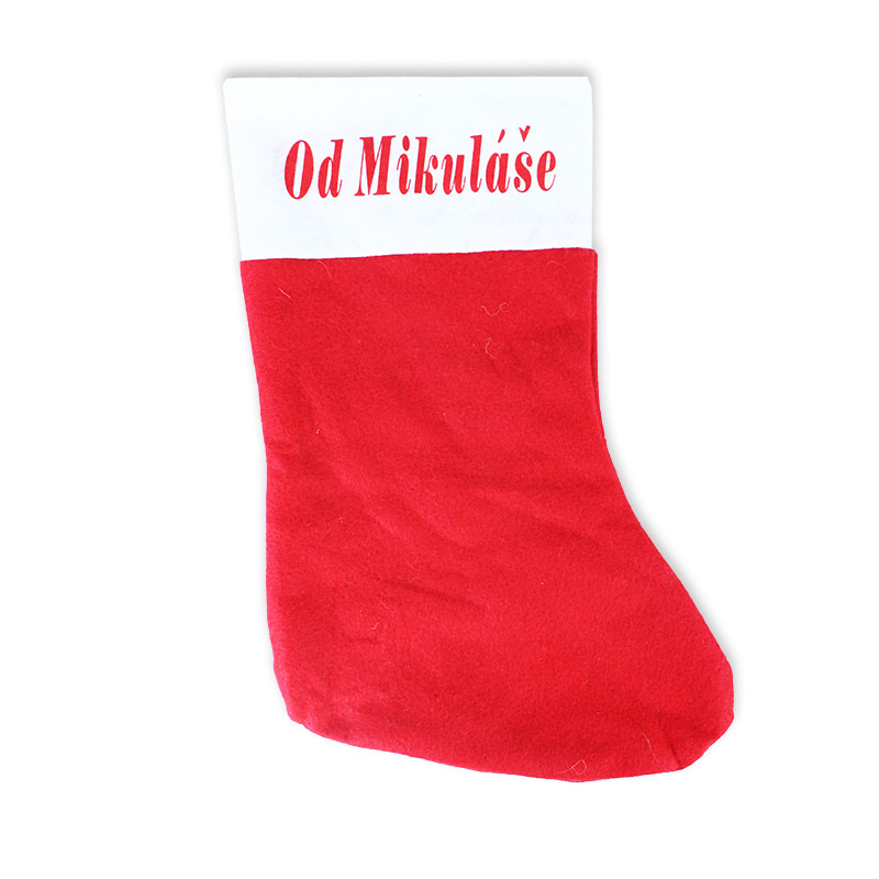 Mikulášská punčocha s nápisem od Mikuláše, do které se vejde spousta dobrůtek, slouží i jako stylová vánoční dekorace. Překvap kamarády nebo svou rodinu touto úchvatnou punčochou, naplň ji sladkostmi a prožij kouzelný čas vánoční!