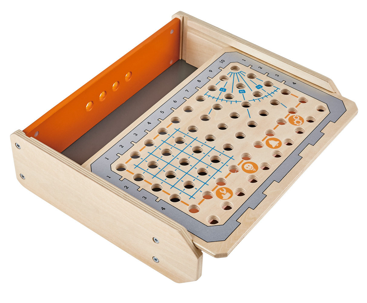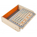 O tom sní malí kutilové: vlastní bedna na nářadí! Tato barevná skříňka na nářadí obsahuje vše, co nejmenší potřebují pro všechny druhy oprav, a velmi snadno se přenáší. Sada v barevném monstr designu obsahuje tři šrouby s matičkami, dva hřebíky, dva ozubené kola, klíč, šroubovák, kladívko, dřevěný pásek se třemi otvory, dřevěný pásek se dvěma otvory a trojúhelník se čtyřmi otvory. Box na nářadí je úložný prostor a hrací plocha v jednom. Balení: 10x12,6x18,4cm. Věk: 3+