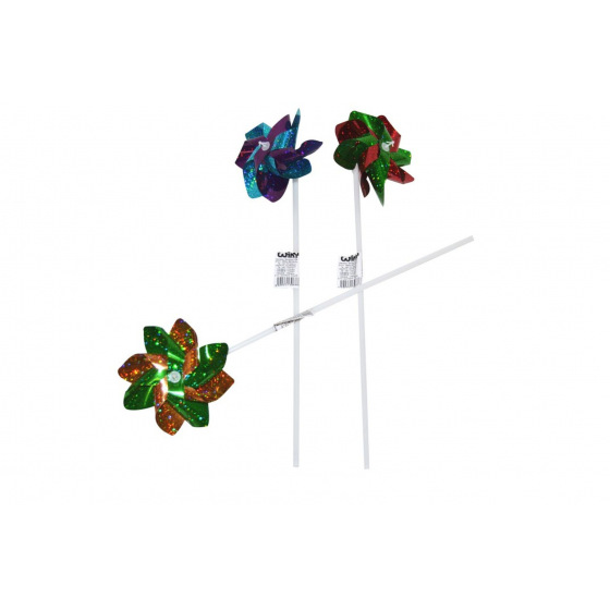 Větrník průměr 10cm barevný třpytivý plast 41cm mix barev
