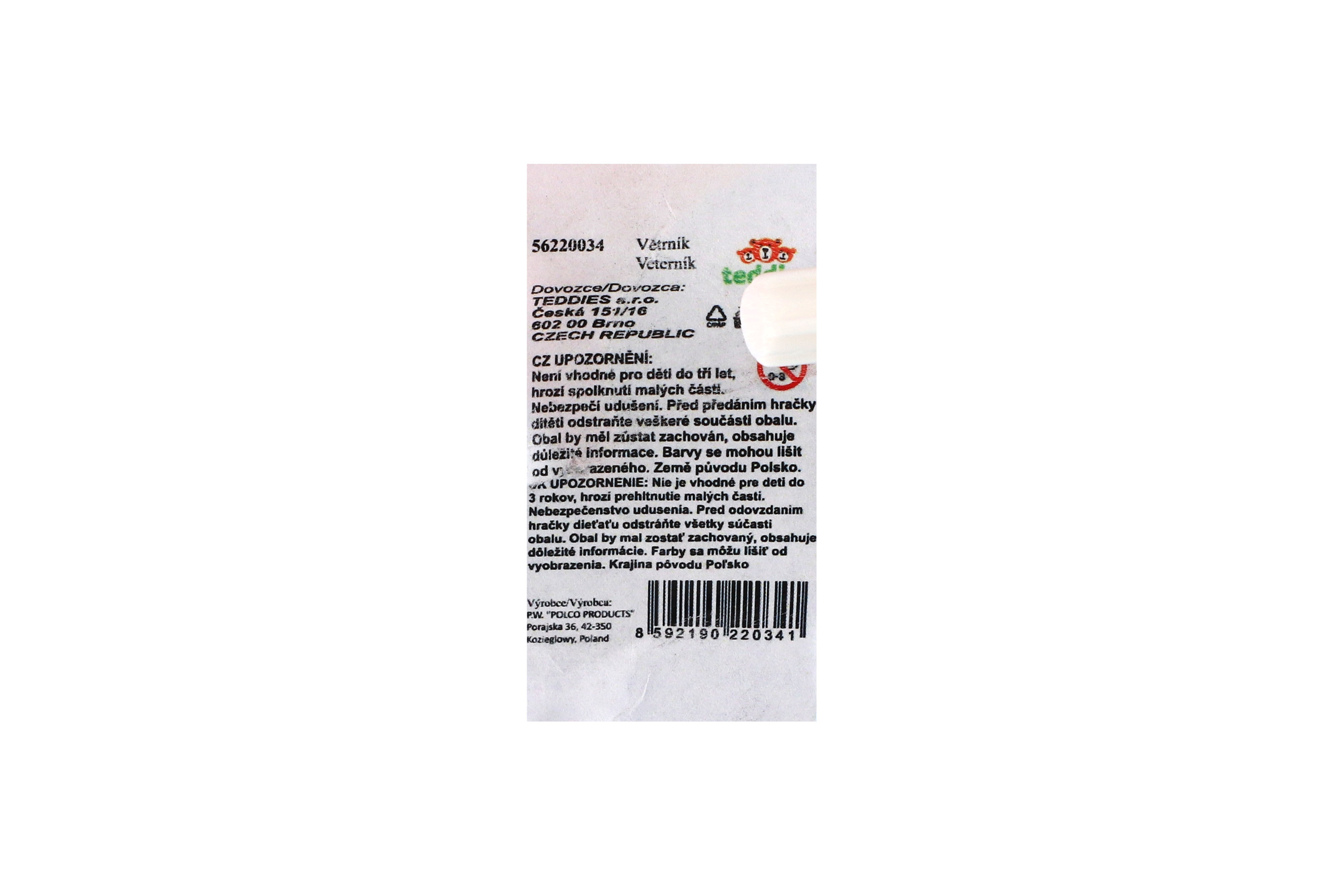 Barevný větrník vykouzlí úsměv na každé dětské tváři. Vhodný pro hru na doma i jako dekorace na zahradu. Průměr větrníku: 22 cm Výška větrníku: 47 cm