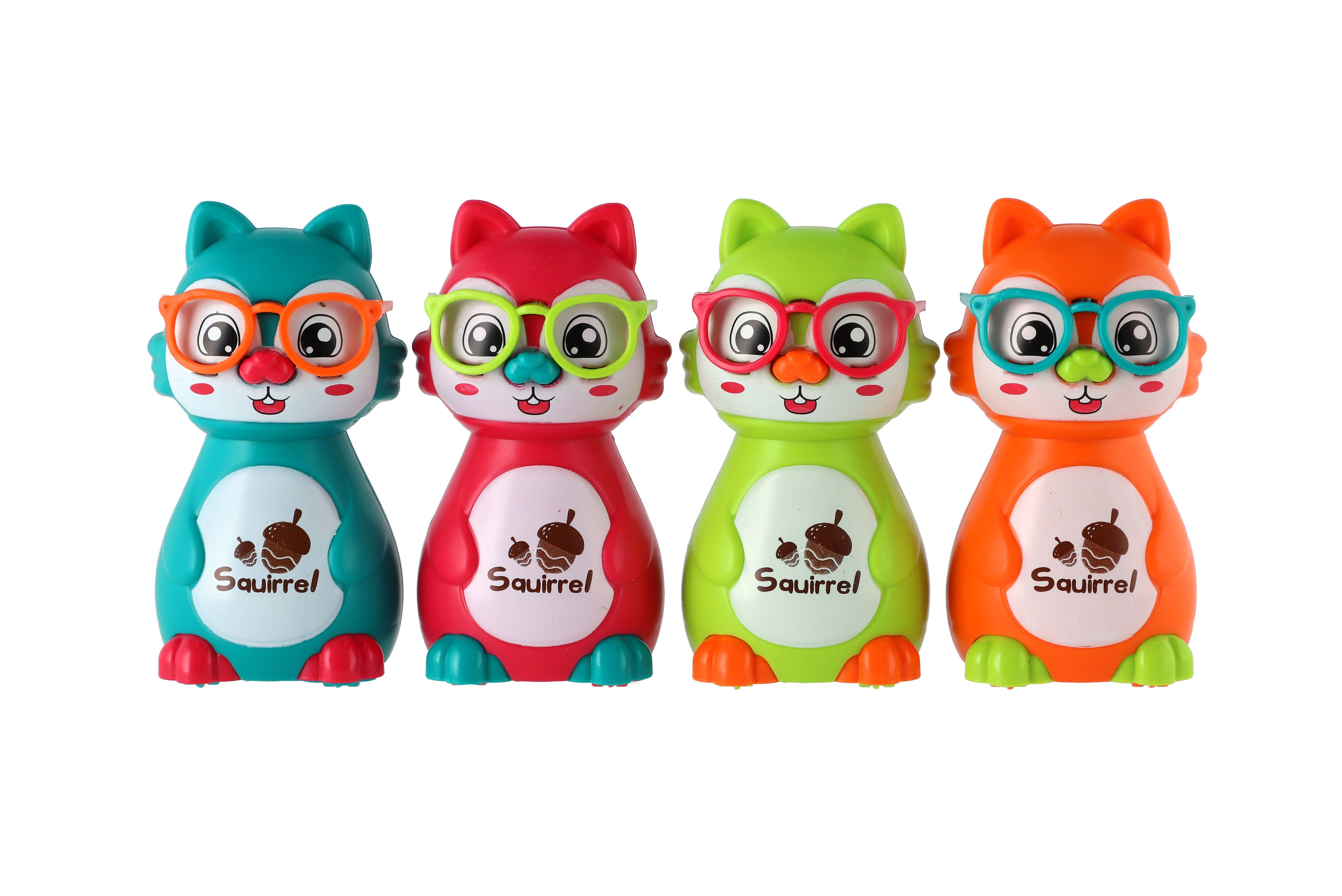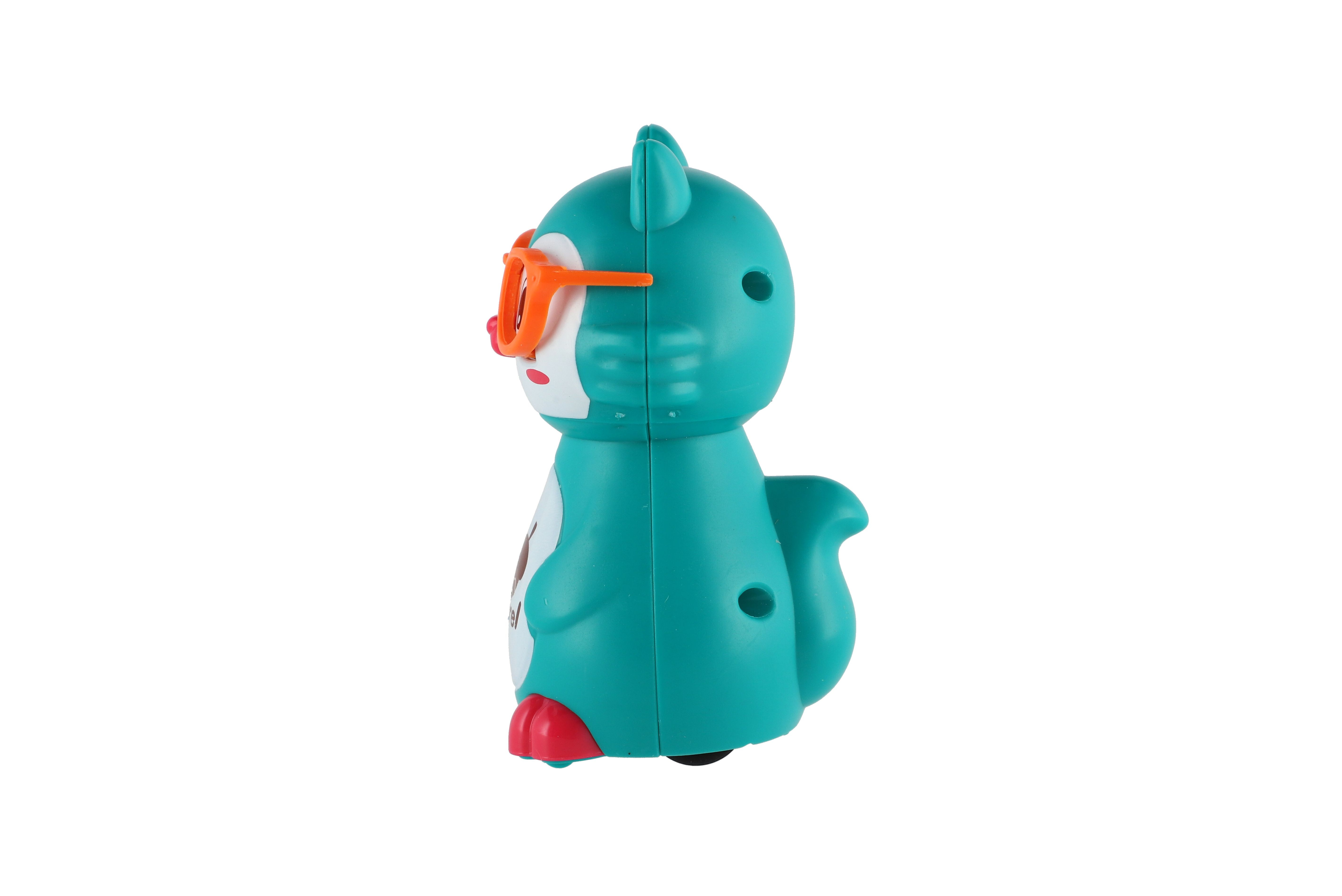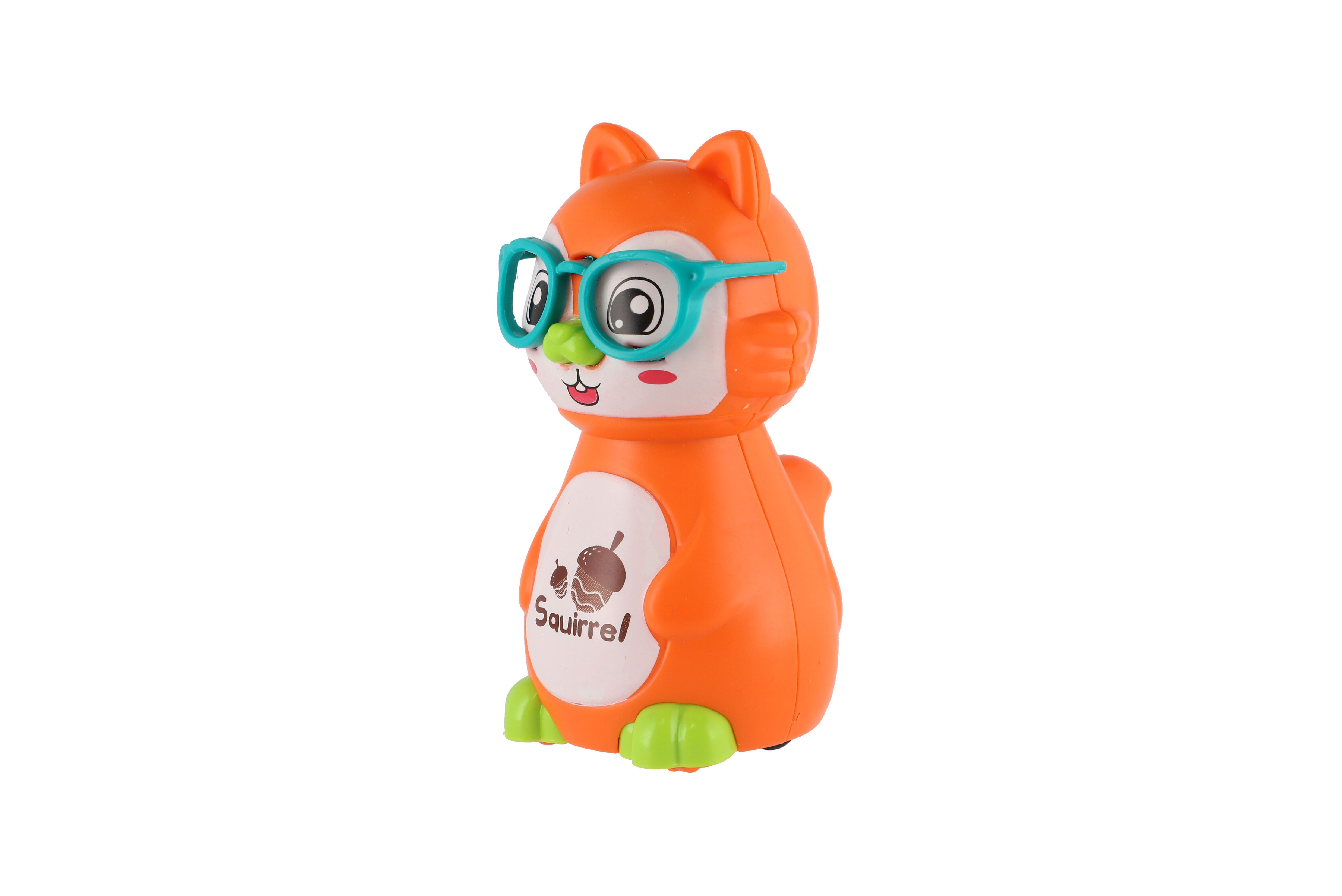 Stlač hlavu a veverka se rozjede. Na spodní části má malá kolečka. Rozměr veverky: 10 cm Vhodné od 3