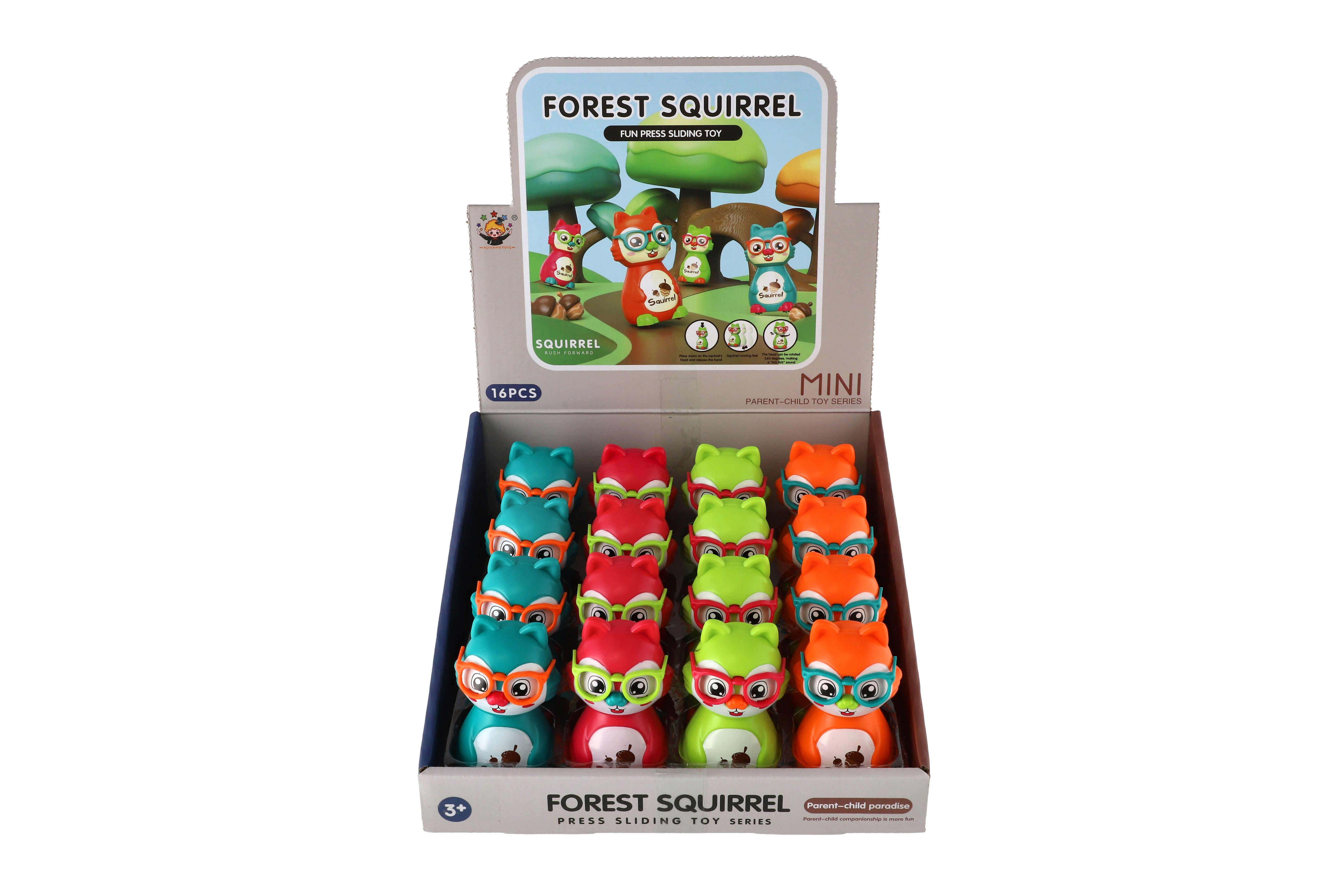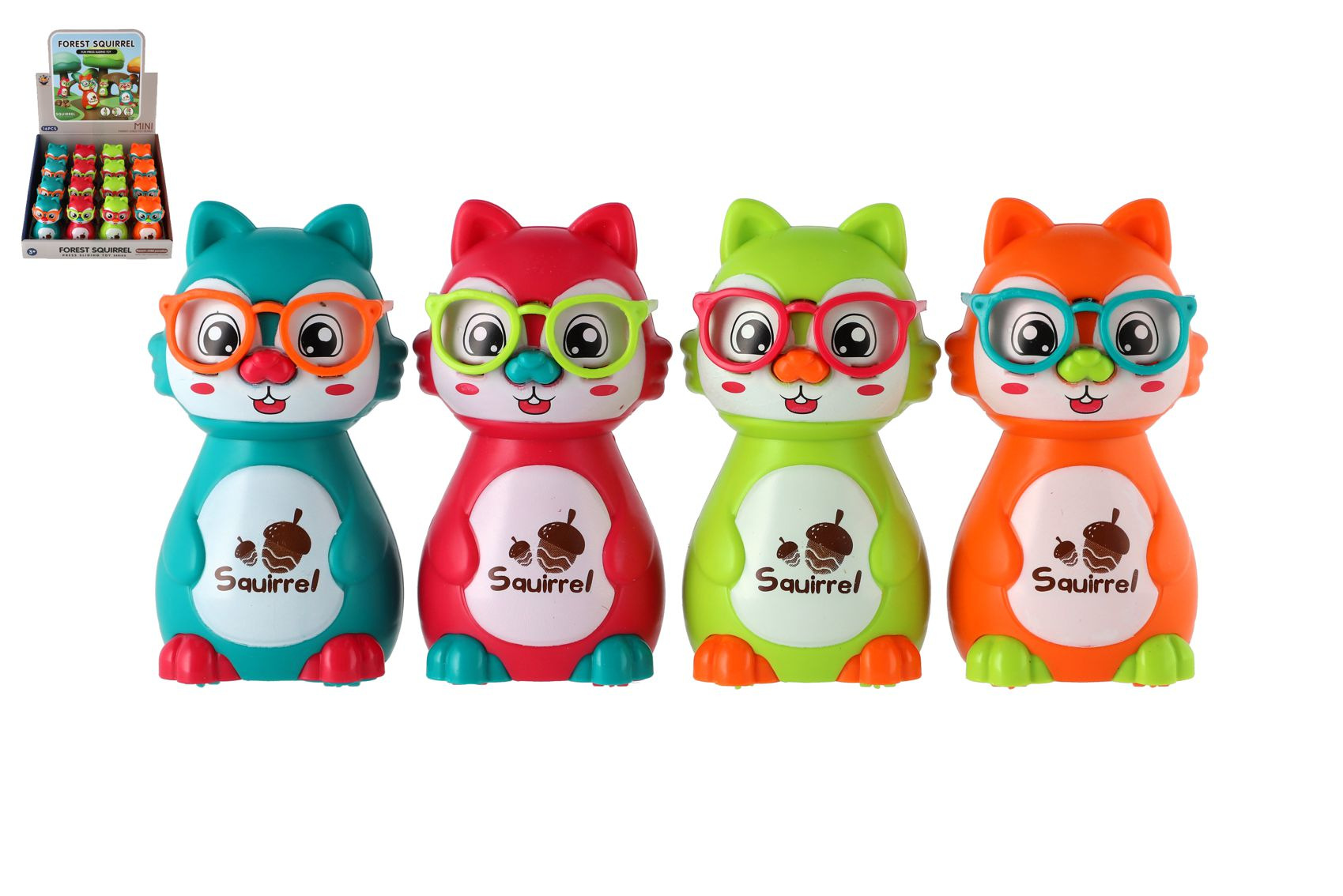 Teddies Veverka plast 10cm na setrvačník stlač hlavu a jeď 4 barvy 16ks v boxu