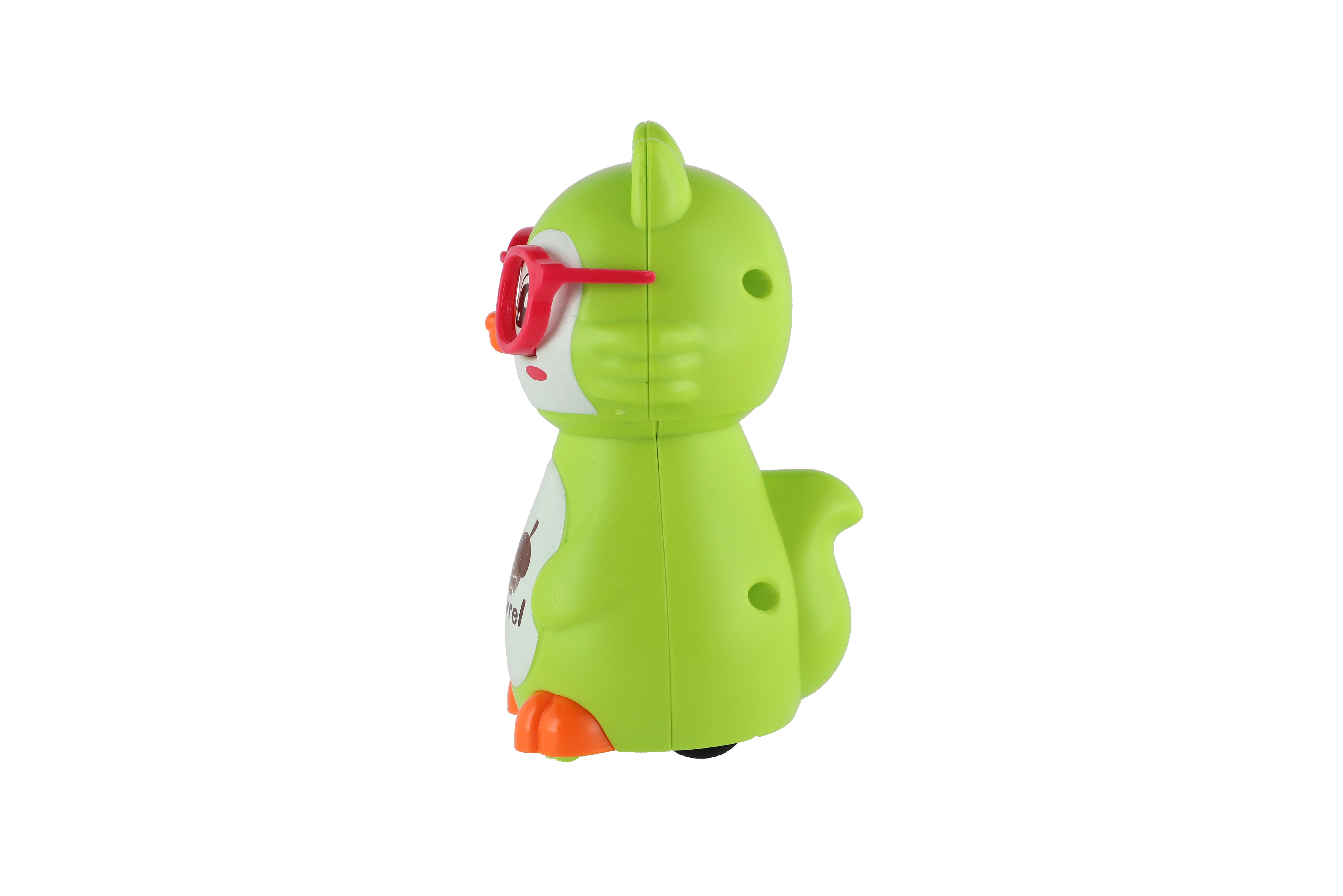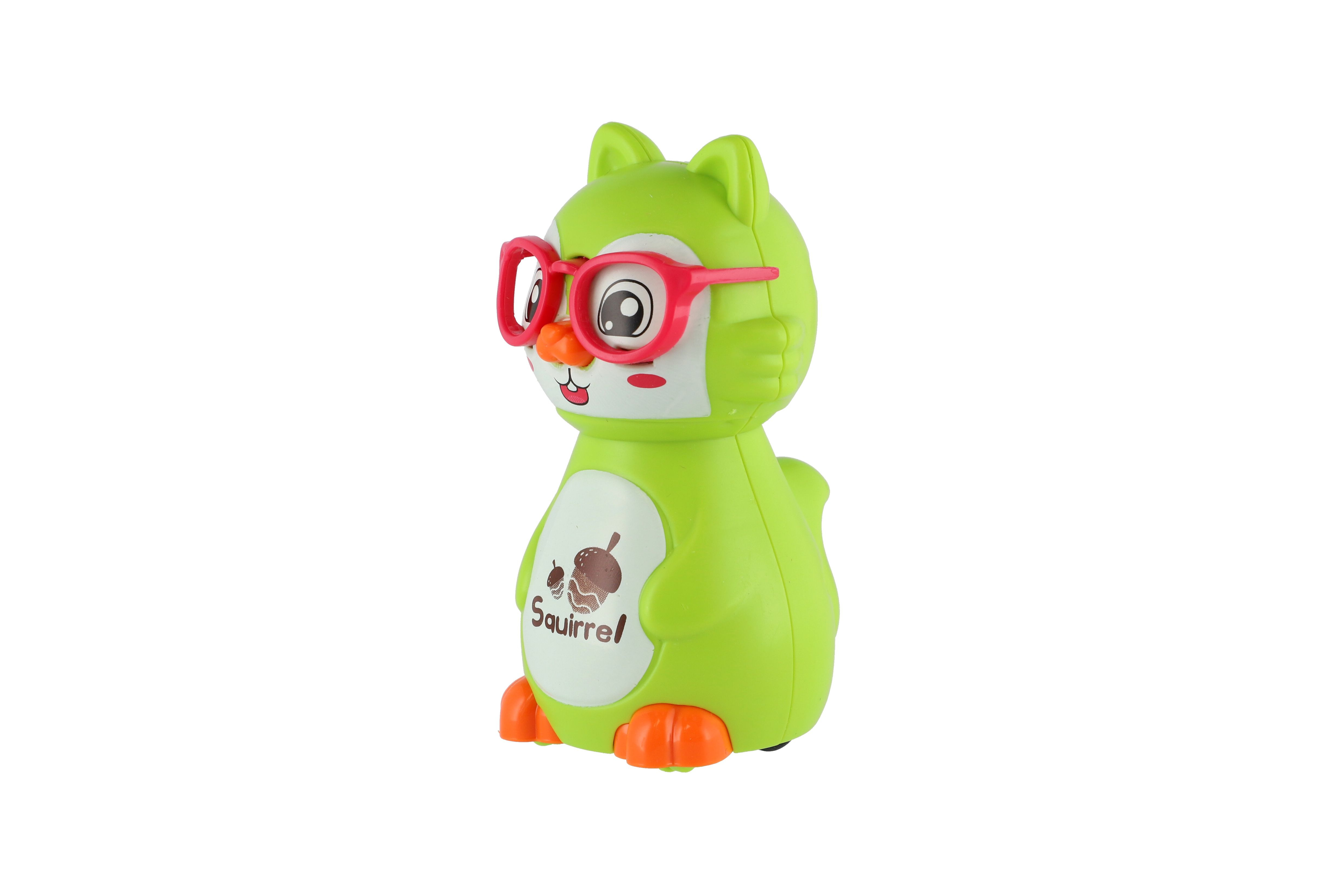 Stlač hlavu a veverka se rozjede. Na spodní části má malá kolečka. Rozměr veverky: 10 cm Vhodné od 3 let