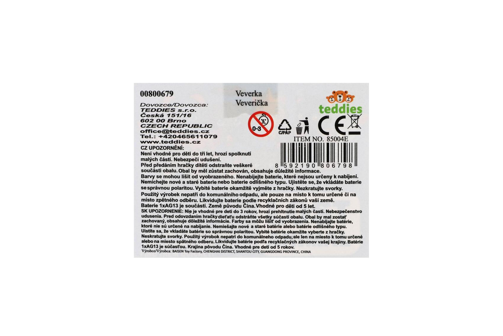 Roztomilé zvířátko veverka v chlupatém provedení je připravené na dobrodružství s malým plastovým žaludem. Po zapnutí pomocí tlačítka ON/OFF na spodní straně se začne hýbat, a stane se tak interaktivní hračkou pro děti od 3 let. K dispozici jsou 3 barevné varianty. Balení obsahuje 1 veverku a 1 žalud v krabičce o velikosti 9×7×9 cm. Hračka je na baterie a podporuje vnímání pohybu, zrak i sluch. Ideální jako dárek nebo zábava na doma.