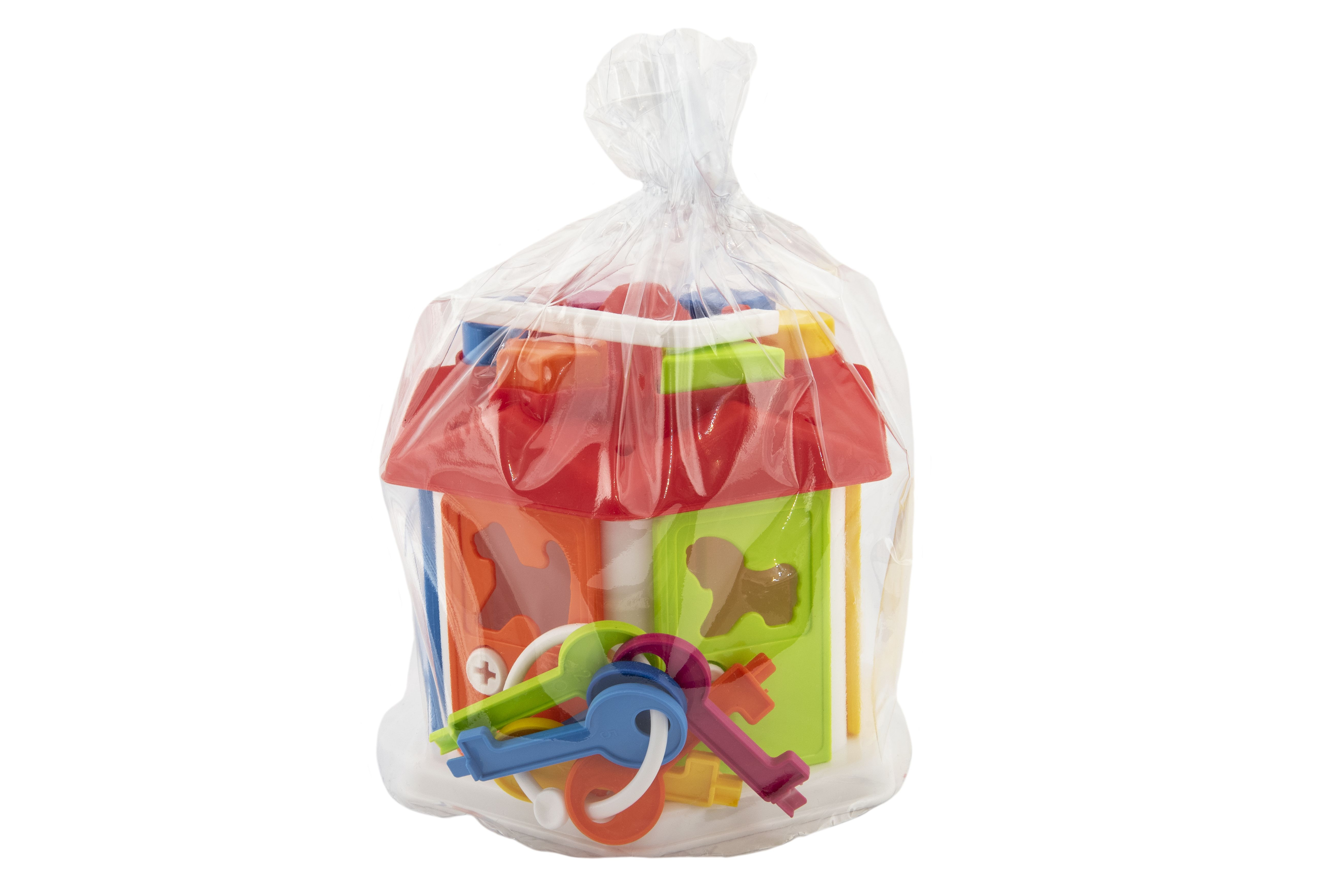 Teddies Vkládačka domeček plast s klíči se zvířátky v sáčku 19x20x19cm 12m+