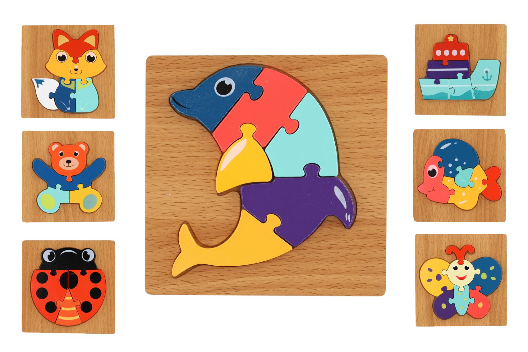 Oblíbená dřevěná vkládačka se zvířátky pomáhá dětem rozvíjet motoriku, logické myšlení i poznávání tvarů a zvířecí říše. Každý dílek má své místo – stačí najít ten správný tvar a vložit ho do otvoru. Vhodné pro děti od 3 let