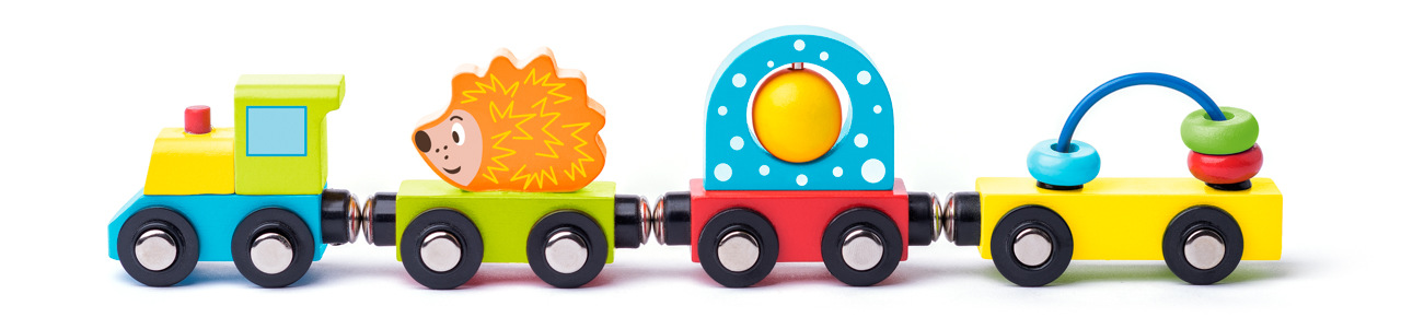 Vláček do vláčkodráhy pro nejmenší děti obsahuje figurku ježečka a další zábavné hrací elementy: korálky na drátku a otáčecí kulličku. Věk: 2+. Rozměr: 27,5 cm