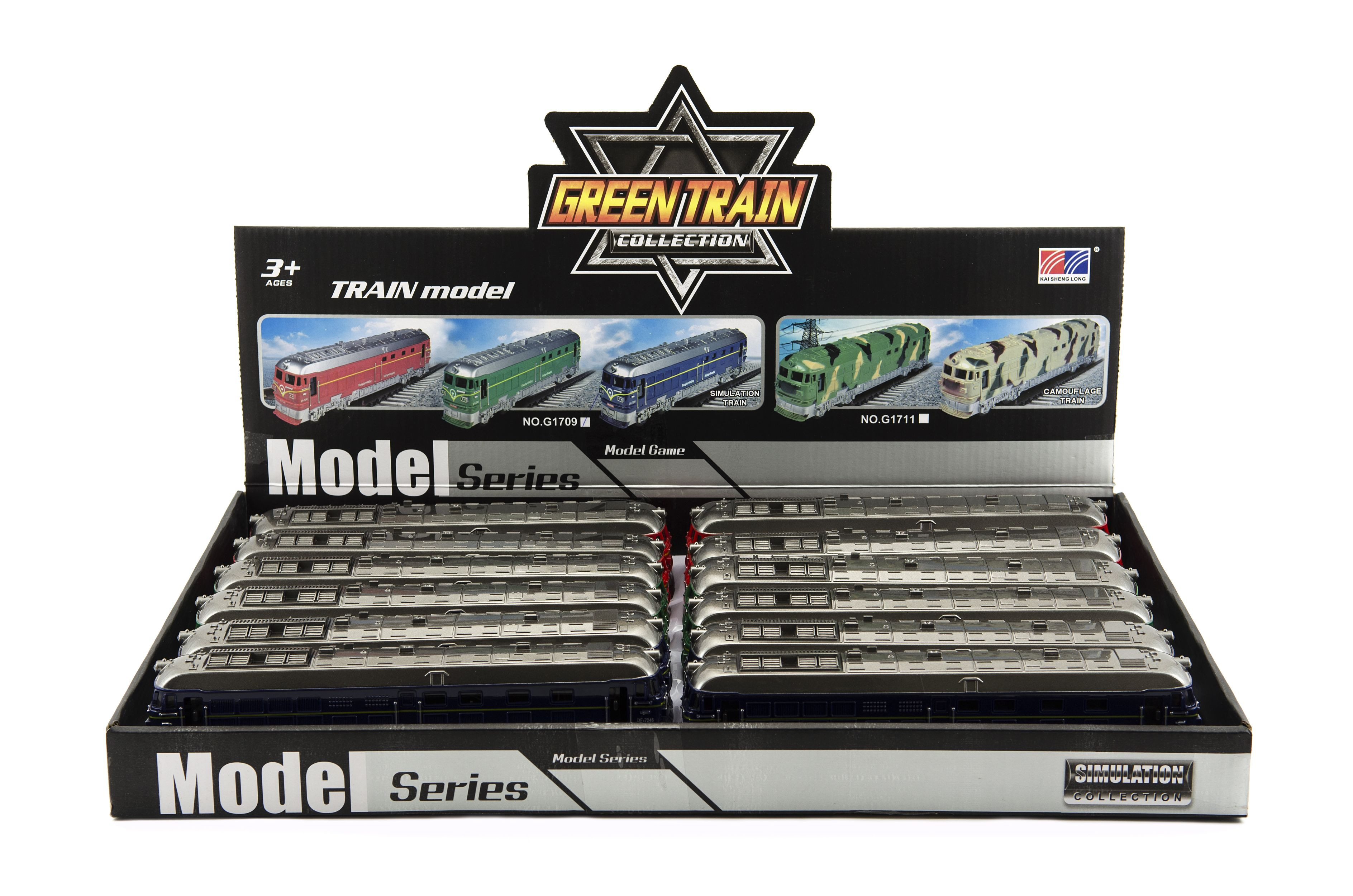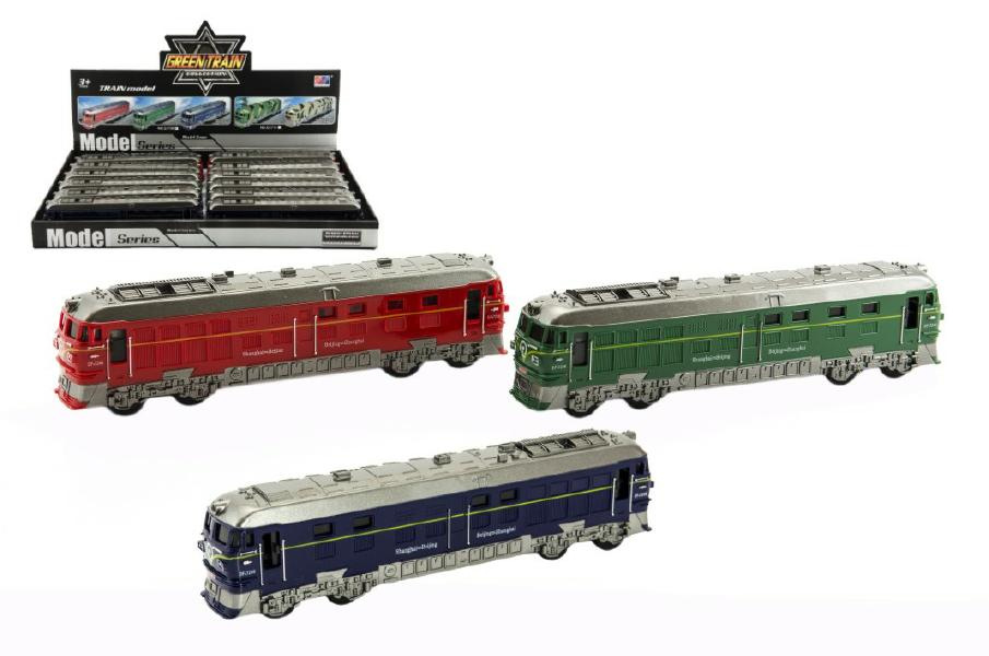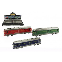 Teddies Vlak/Lokomotiva plast 23cm na setrvačník na baterie se zvukem se světlem asst 3 barvy
