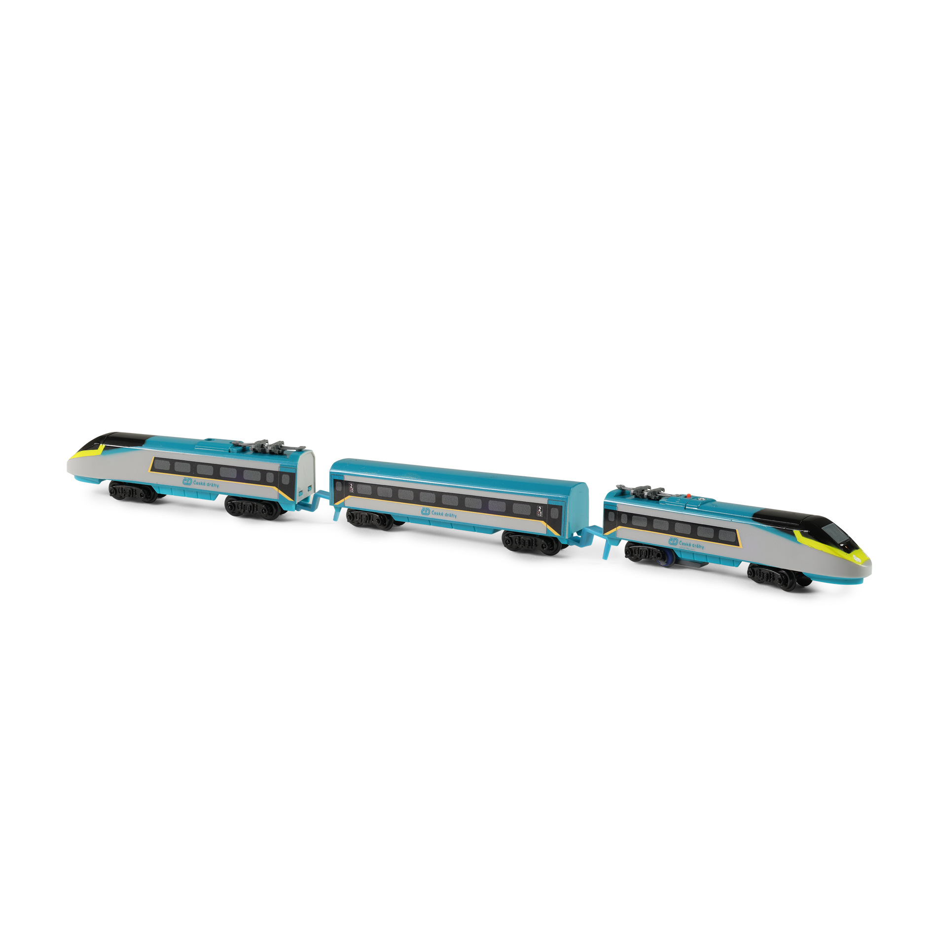 Milujete cestování vlakem? Tak sestavte koleje, postavte na ně lokomotivu, připojte vagóny a vzhůru za dobrodružstvím! Originální vlak Pendolino obsahuje přední a zadní lokomotivu a 1 vagón, 8 zahnutých a 4 rovné koleje. Lze vytvořit kolejiště až do velikosti 96 x 58 cm. Rozteč kolejí je 1,4 cm. Lokomotiva měří na délku 14 cm a vagón 13,5 cm. Lokomotiva jezdí na 1 ks AA baterie (není součástí), na střeše lokomotivy vypínačem ON/OFF (zapnuto/vypnuto) uvedete vlak do chodu. Vlak Pendolino MINI lze kombinovat s vlakem RegioJet MINI a Slovenské dráhy MINI.