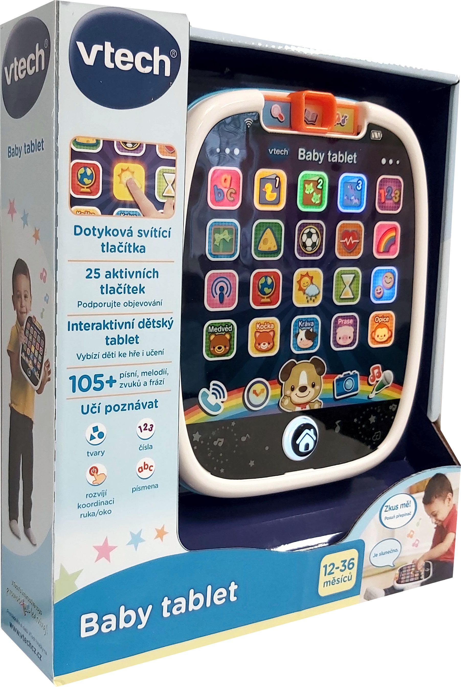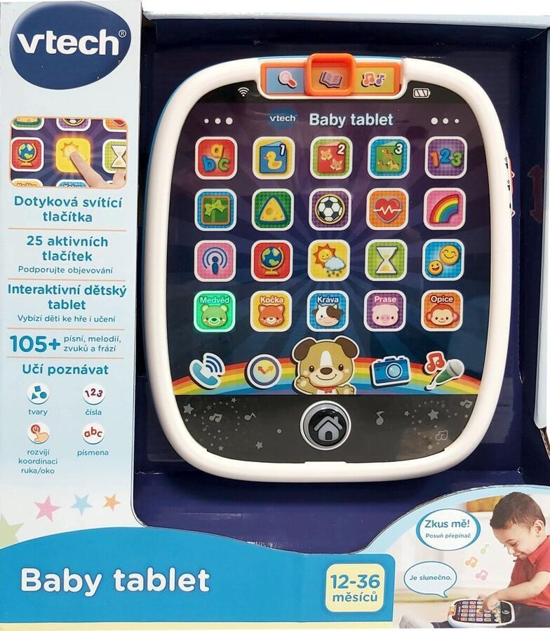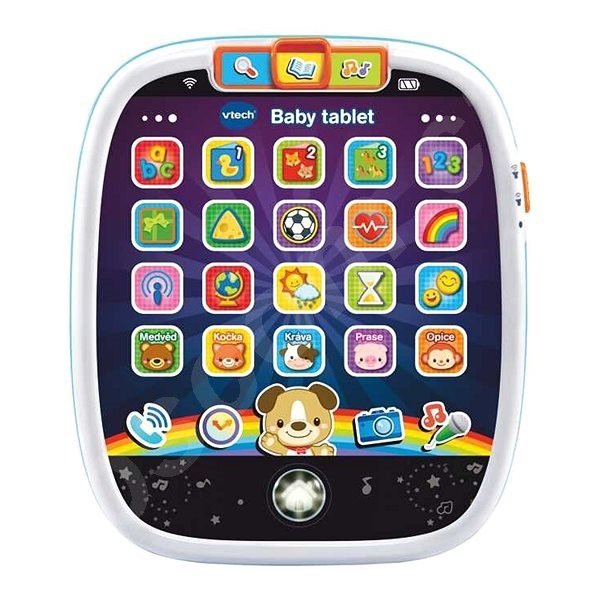 Dotykový tablet pro nejmenší děti Svítící dotykový tablet napodobuje skutečný tablet dospělých. Tablet nabízí 3 herní režimy. Speciální aplikace přinesou i těm nejmenším dětem spoustu poznání. Získají tak základní znalosti o písmenech, číslech, barvách, tvarech i zvířatech. Dítě se také dozví něco o počasí, že je právě čas na snídani nebo třeba “aktuální” zprávu o koťátku.