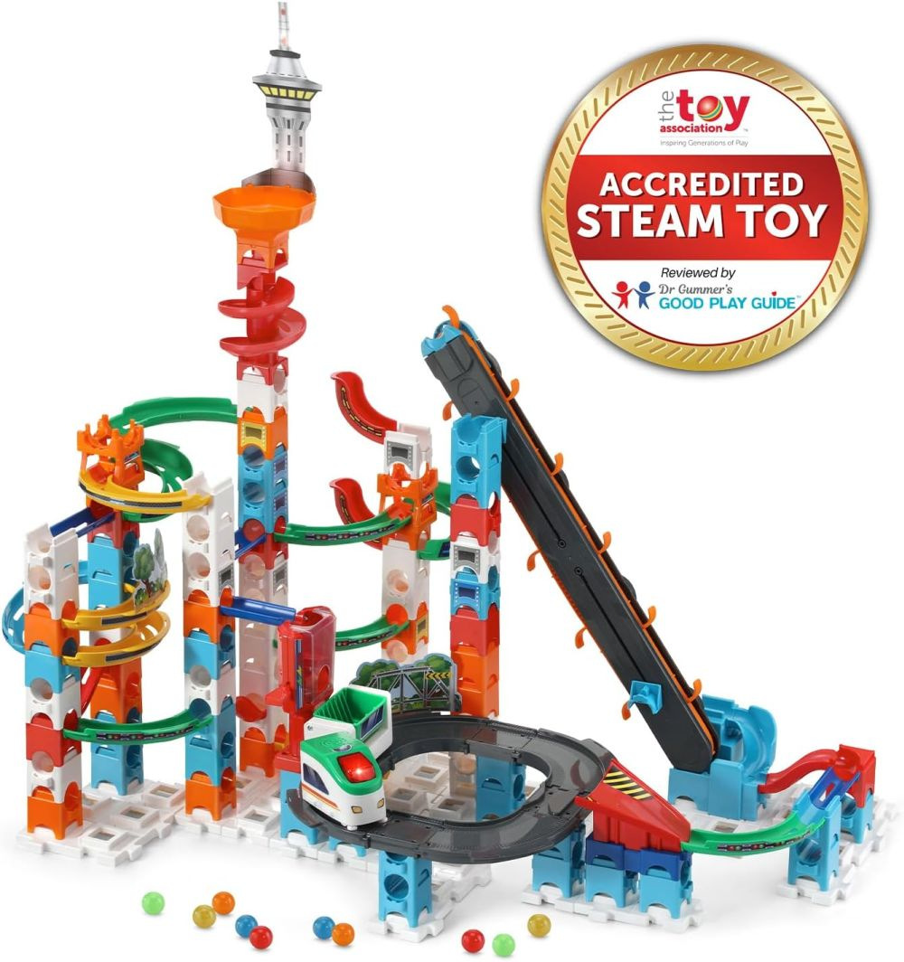 To musíte zažít! Kuličky, které se závratnou rychlostí řítí dolu zatáčkami, spirálami, pres mosty, aby je nakonec naložil vlak a výtahem poslal zpět na vrchol! Skvělá hudba a bláznivé zvuky doplní tuhle super akční zábavu! Poznejte nával vzrušení při odpalováním kuliček. Sledujte dráhu a soutěžte s rodinou a přáteli. Kreativní a zábavná kuličková dráha nabízí neomezené možnosti sestavy a hry. Lze spojovat s ostatními dráhami. Pokud rádi stavíte, sestavujete a máte kreativní myšlení, pak je to hra přesně pro vás. Fantazii a vlastní kreativitě se meze nekladou. Odměnou je pak radost z pádících kuliček. Obsahuje podrobný barevný návod, jak je možné dráhu sestavit.