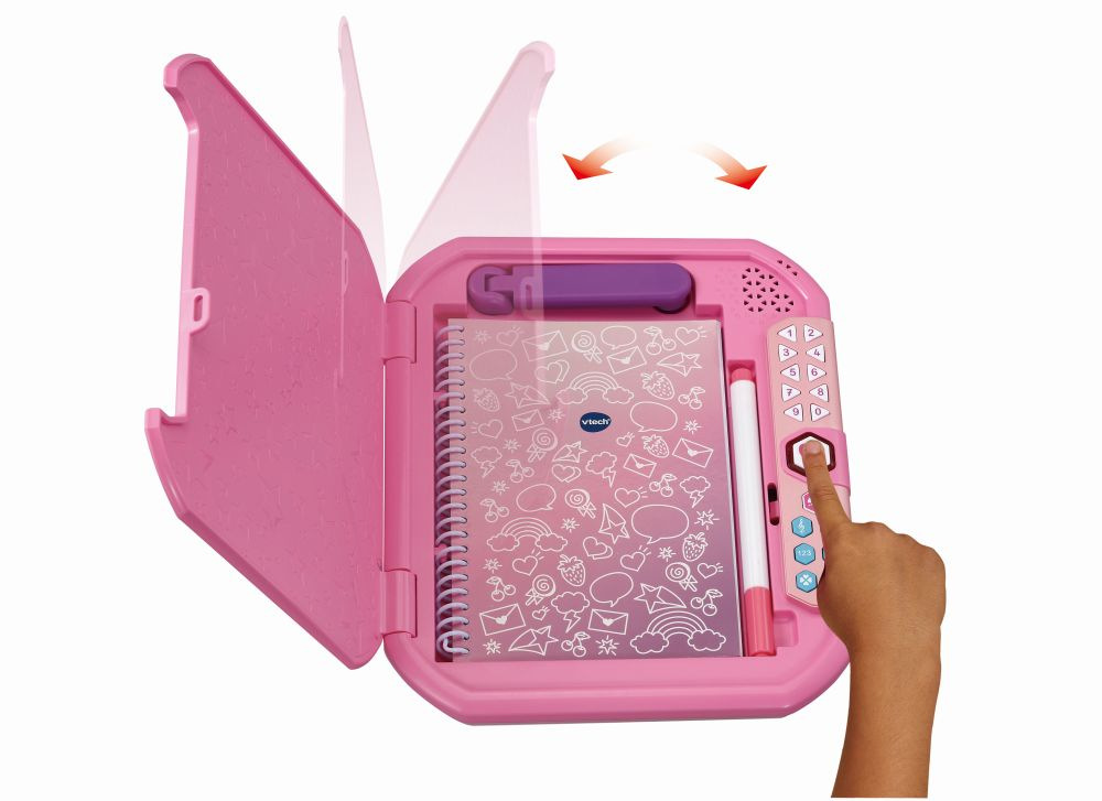 Se zabezpečeným Tajným zápisníkem od VTech® jsou všechna tvá tajemství v bezpečí! Jedině ty dokážeš odemknout zápisník tajným přístupovým kódem! Všechna tajemství si můžeš zapsat do 30 stránkového poznámkového bloku. A to není vše! Pro super tajné poznámky použij neviditelnou tužku. Takto napsanou zprávu lze vidět jen s pomocí kouzelného světla! Ukaž svou kreativitu a vytvoř si vlastní melodie, potrénuj paměť při hraní hry, poznej své šťastné číslo nebo si poslechni recept na štěstí! Tvůj Tajný zápisník je prostě dokonalý! Zápisník obsahuje: • Bezpečnostní kryt s kódovaným otevíráním • 30 stránkový blok • Kouzelnou tužku pro tajné zprávy • UV světlo pro čtení tajných zpráv • Bezpečnostní schránku pro tvé cennosti • Hru „Paměťový řetězec“ • Recept na štěstí • Generování tvého šťastného čísla • Možnost vytváření vlastní uvítací melodie • Rychlý návod v češtině (slovenštině) • Ovládání hlasitosti