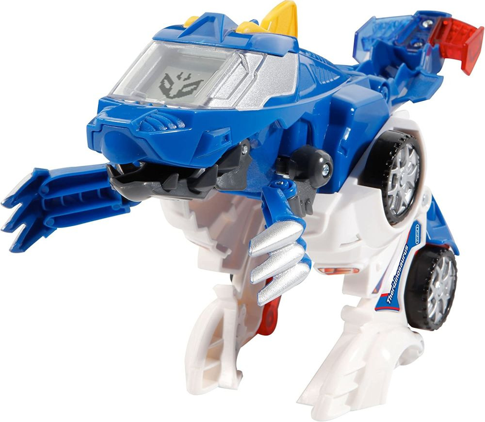 Mluvící auto-dinosaurus s digitálním displejem v českém jazyce.\nTransformujte svého dinosaura na super policejní auto anebo proměňte auto v zuřivého dinosaura.\nV okamžiku se tento zuřivý dinosaurus dokáže proměnit na superrychlé policejní auto i s houkačkou! Displej s animacemi se mění v závislosti na režimu hry: Dinosauří tvář nebo superpolda v režimu policejního speciálu.\n\nV režimu Dinosaura pohybem žlutého akčního tlačítka rozhýbá Teryk ruce a otevře tlamu, ze které mu „šlehá oheň“. Další tlačítka aktivují zábavné zvuky a fráze. \nObsahuje\n•\tvíce než 60 zvuků a frází.\n•\tdisplej, který zobrazuje různé animace v závislosti na herním režimu.\n•\t2 tlačítka, která aktivují zábavné zvuky a fráze\n•\tblikající maják policejního auta\n•\tnastavení hlasitosti zvuku\n\nRozměry balení (D x Š x V): 25 x 14 x 23,5 cm\nFunguje na 2 baterie LR03/AAA, které jsou součástí balení.