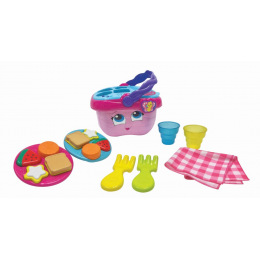 S Veselým piknikovým košíkem od VTech® vaše dítě rozvíjí svou fantazii. Košík obsahuje všechno k přípravě dokonalého pikniku. Od ubrusu až po vidličky! Manipulací s předměty a vkládáním jídla do víka rozvíjí dítě jemnou motoriku. Objevuje a poznává tvary, barvy, jídlo, zdvořilostní fráze, počítání i rozvíjí představivost. Košík například požádá o něco k jídlu, co vypadá jako trojúhelník, nebo třeba zdvořile požádá o pomeranč. Dítě pak musí vybrat správnou variantu a vložit do správného otvoru. Nebo dětem třeba sdělí, že: „Každý správný kluk i holka umí říkat prosím a děkuji!“. Naučí poznávat a vybírat jak tvary, tak i barvy a za každý správně splněný úkol také pochválí.