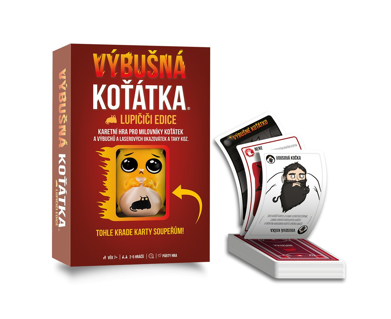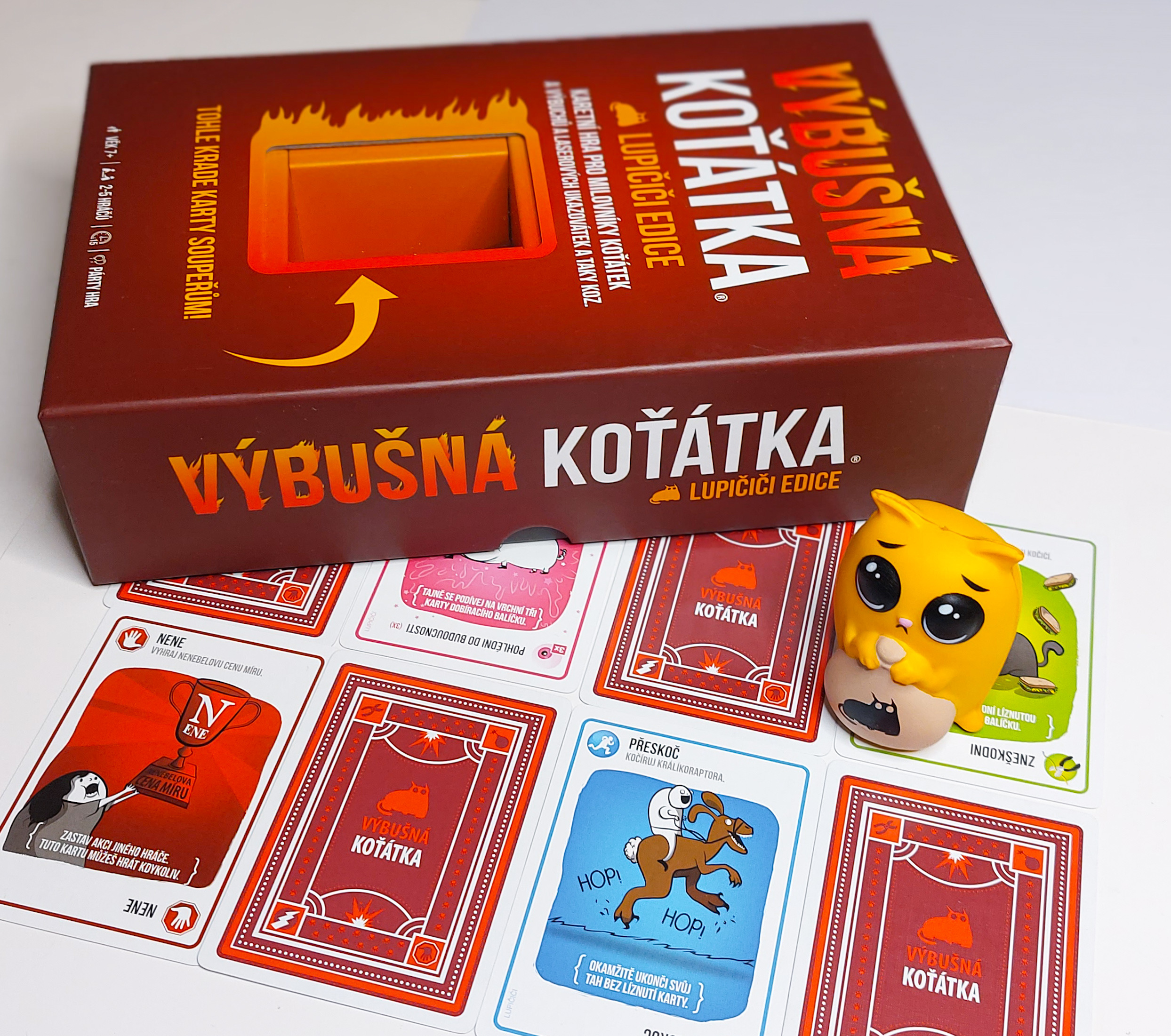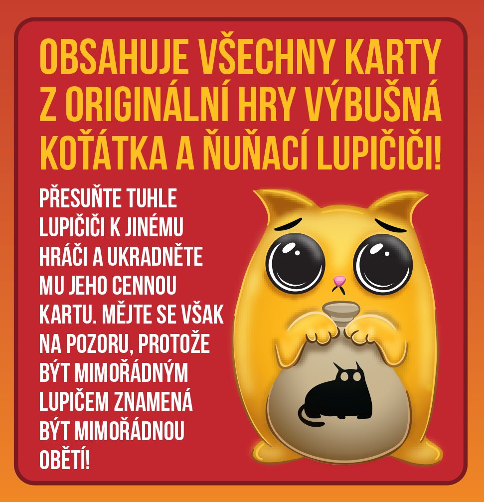 Tato speciální edice Výbušných koťátek obsahuje všechny karty z originální hry Výbušná koťátka a ňuňací LUPIČIČI! Přesuňte tuhle LUPIČIČI k jinému hráči a ukradněte mu jeho cennou kartu. Mějte se však na pozoru, protože být mimořádným lupičem znamená být mimořádnou obětí!