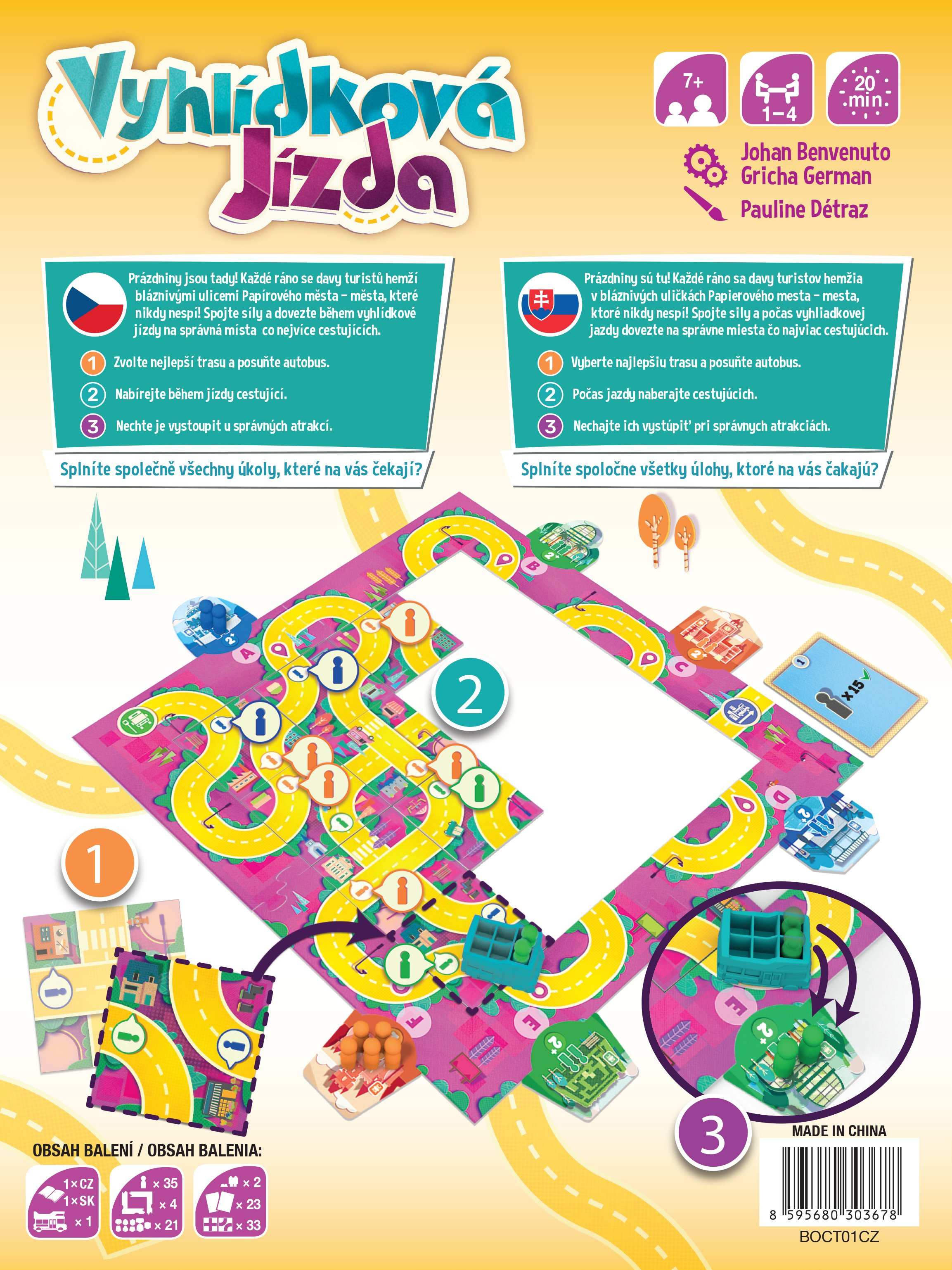 Vyhlídková jízda je kooperativní hra, ve které budete tvořit trasu pro turistický autobus a nabírat do něj cestující. Ty následně budete nechávat vystupovat u správných turistických atrakcí, abyste splnili rozmanité úkoly každého dne.