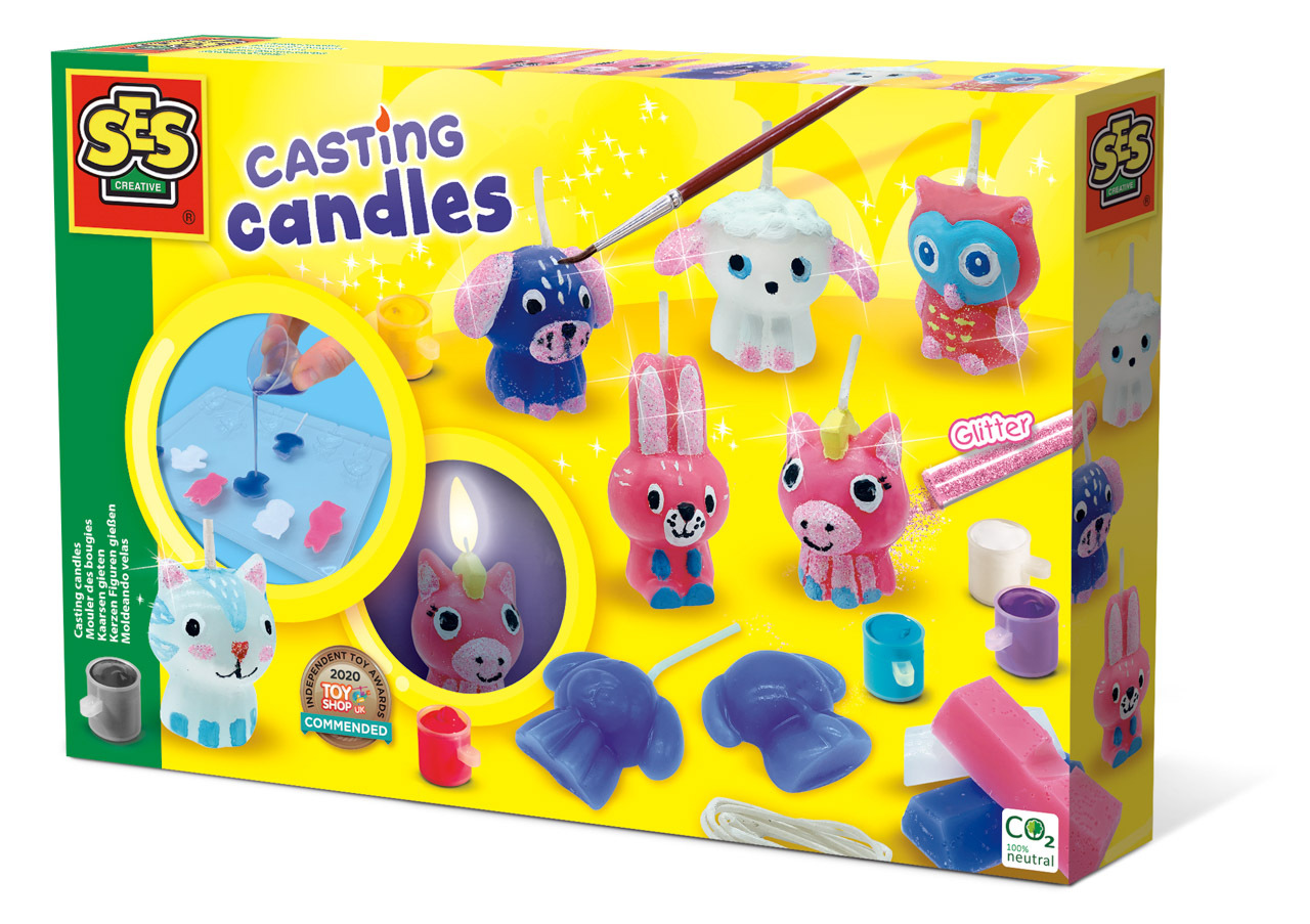Vytvořte si vlastní veselé svíčky. Rozehřejte a nalejte svíčkový vosk do odlévacích formiček ve tvaru zvířátek a snadno si vyrobte originální svíčky, které si dozdobíte podle vlastní fantazie pomocí přiložených barviček a třpytek. Bloky vosku v červené, bílé a modré barvě můžete po rozpuštění namíchat do dalších odstínů a vytvářet ve formičkách různé barevné kombinace. Obsah sady: 3 barevné vosky, knot, odměrný kelímek, odlévací forma, 6 barevných laků, tubička růžových třpytek, štětec a návod k použití. Rozměry balení: 20 x 30 x 4 cm. Věk: 5+