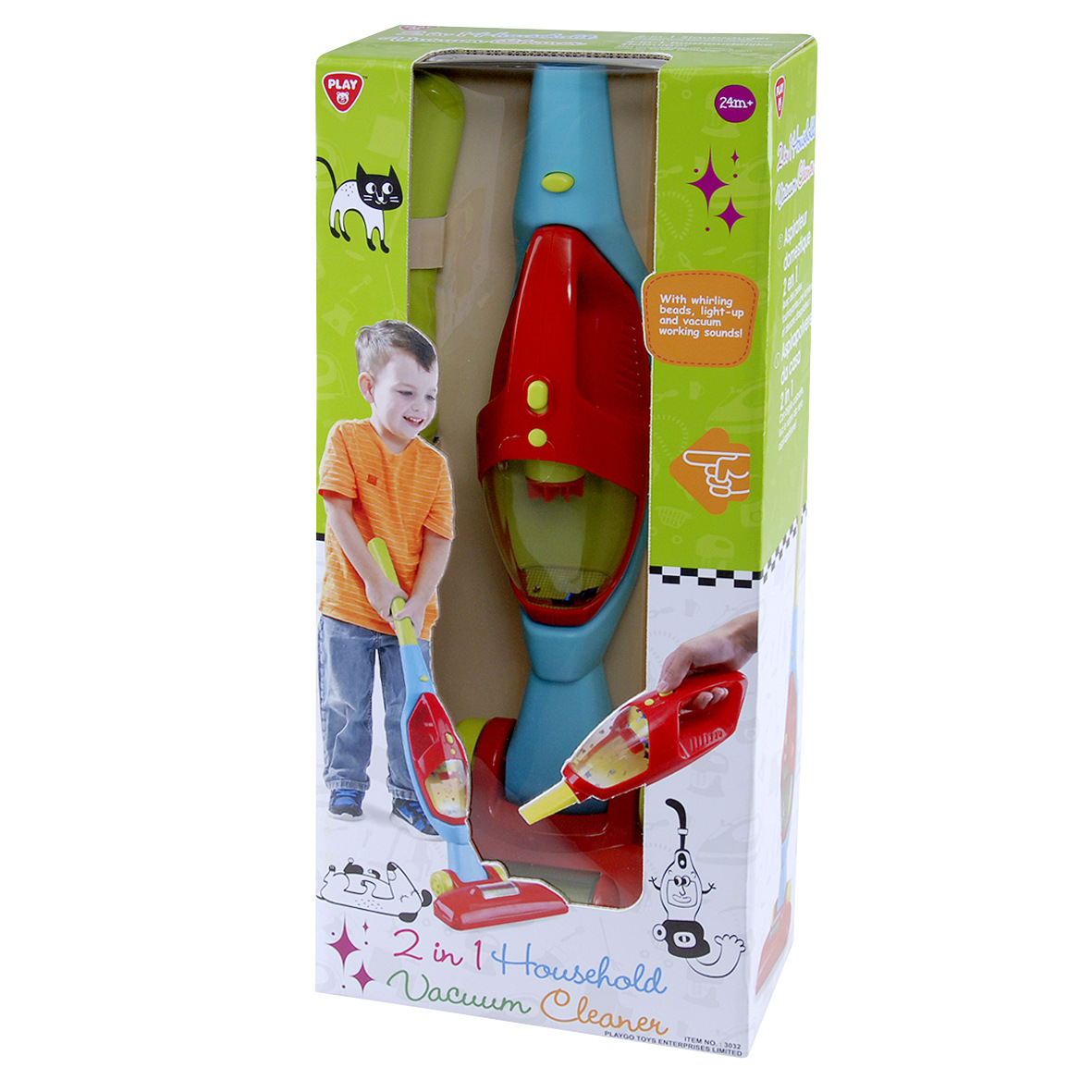 Popis Vysavač 2v1 plast na baterie se světlem se zvukem v krabici 24x54x13cm 24m+