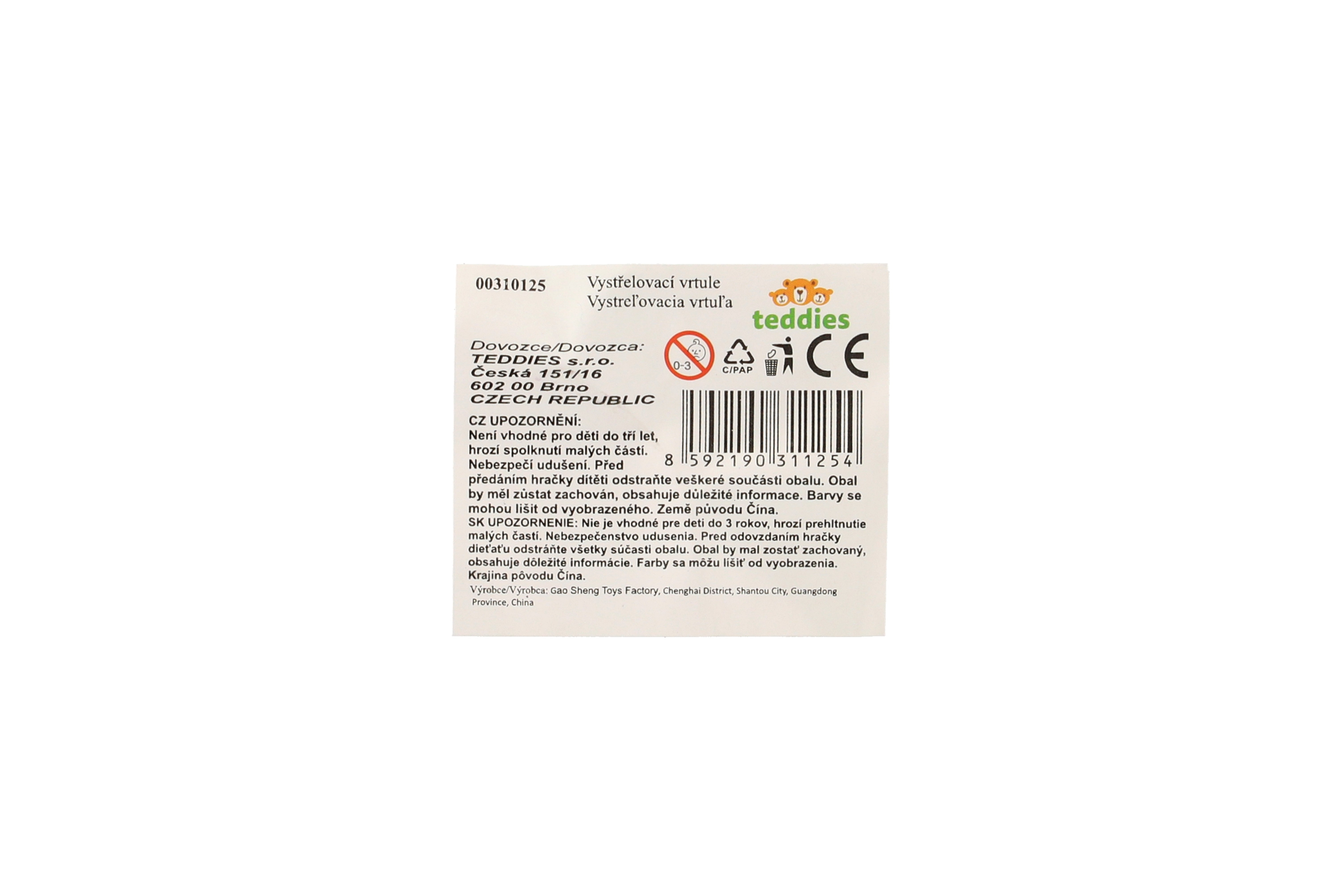 Užijte si spoustu zábavy s tímto vystřelovacím diskem. Vystřelte vrtulku do vzduchu a sledujte, jak vysoko vyletí. Disk může vyletět velmi vysoko. Rozměry balení 14 x 17 x 4 cm. Vhodné pro děti od 3 let.