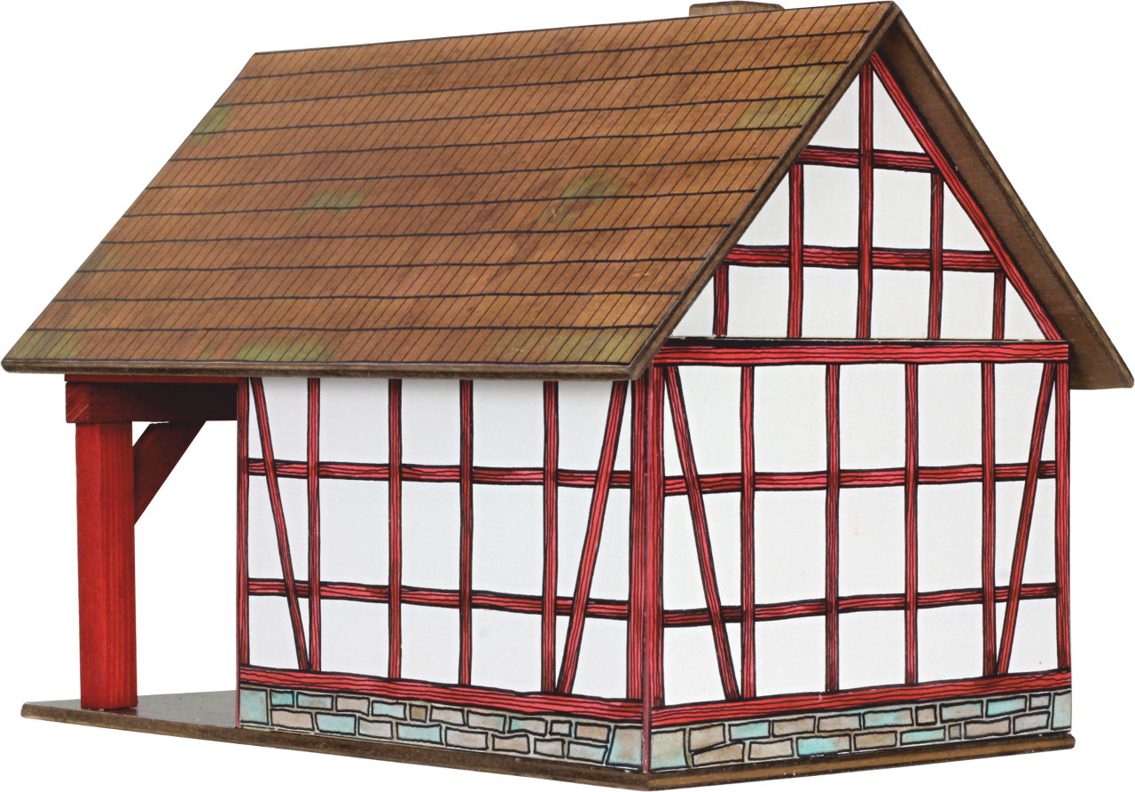 Dřevěná slepovací stasvebnice ve které je vše potřebné k sestavení včetně návodu. Ke slepení se používá lepidlo na dřevo a papír. Není součástí balení.