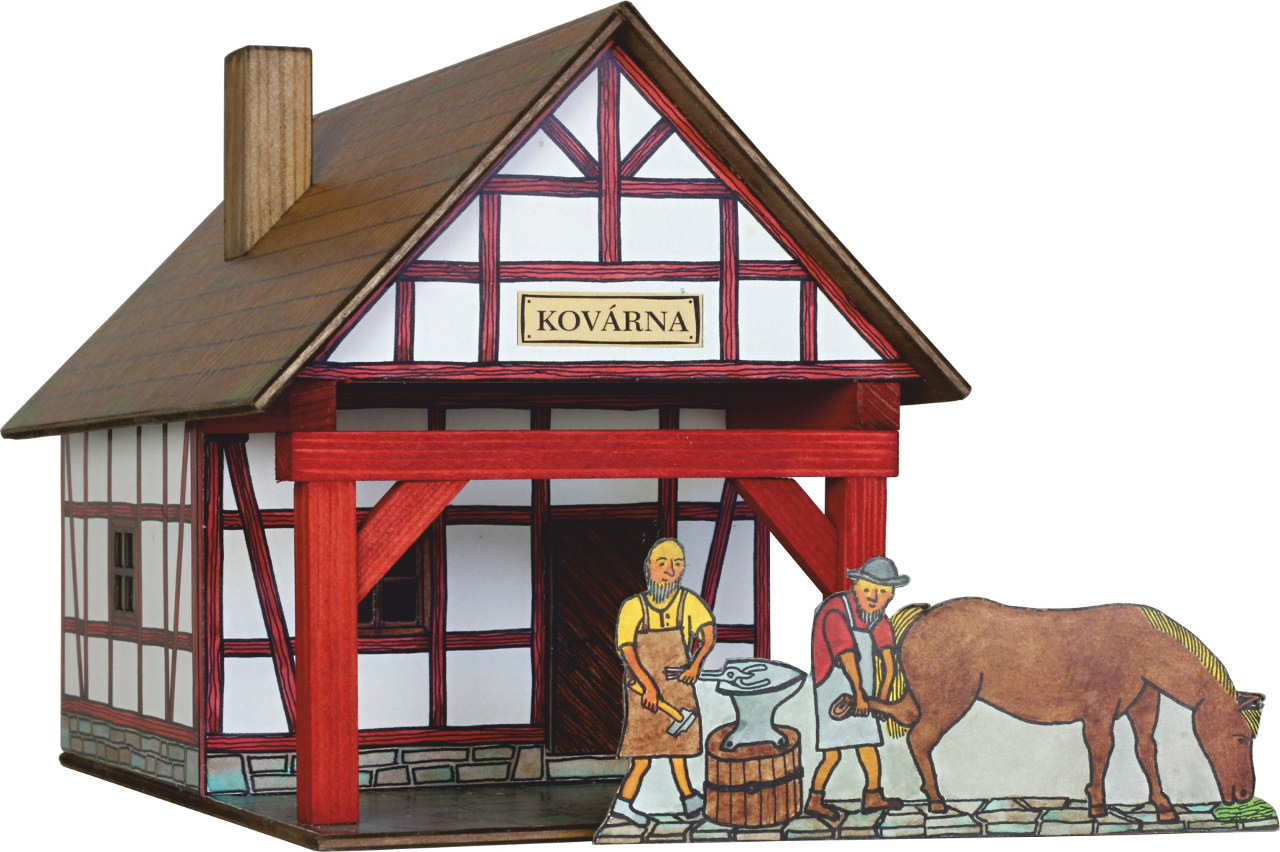 Dřevěná slepovací stavebnice.Stavby se slepují lepidlem na papír a dřevo, které není součástí balení.Počet dílů: 102Rozměry složené stavebnice: 18 x 17 x 14 cmVěk: 8+