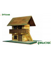 Dřevěná slepovací stavebnice Walachia - Hospoda. Slepovací stavebnice Walachia jsou dřevěné modely domečků a staveb z Valašského kraje v měřítku 1:32. Základem jsou dřevěné hranolky 9x9 mm a k tomu jsou v sadě vždy všechny papírové doplňky - okna, dveře, střešní části atd. Pro lepení se používá lepidlo Herkules, není však součástí stavebnice. Přiložený je montážní návod a malé kapitoly z historie lidové architektury.Níže je označení obtížnosti číslem 1 - 5, přičemž 1 je nejlehčí. Rozměry: 34 x 15 x 23 cm Počet dílů: 192 Obtížnost: 4