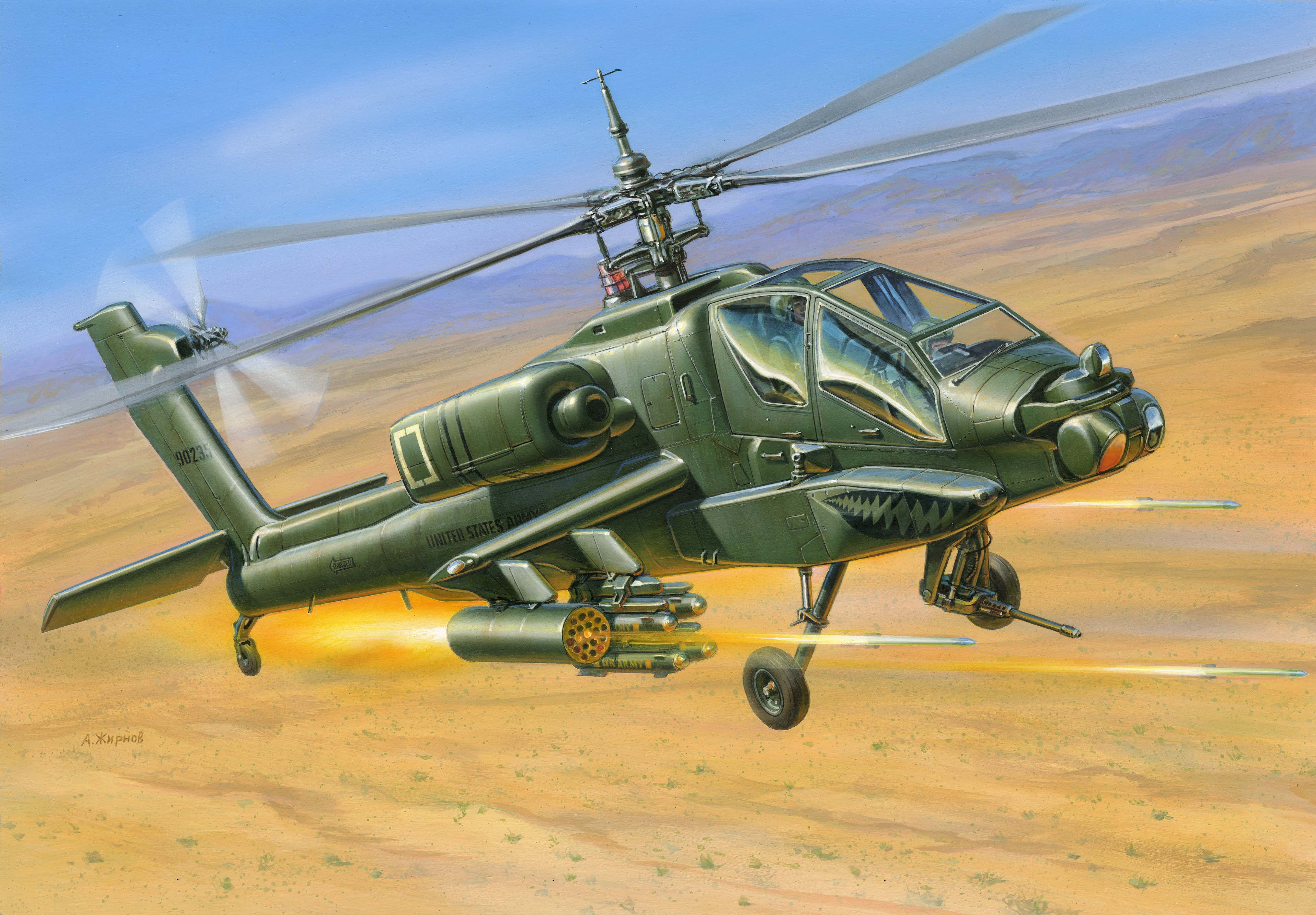 Zvezda Wargames (HW) vrtulník 7408 - AH-64 Apache Helicopter (1:144)