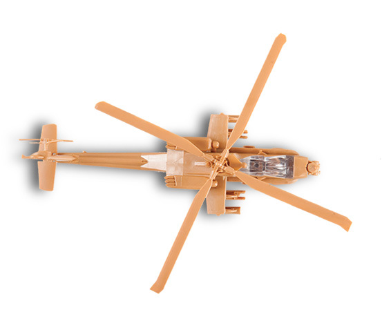 Zacvakávací model vrtulníku. Velikost: 1:144; 10,5 cm. Balení obsahuje: 21 dílků ke složení.