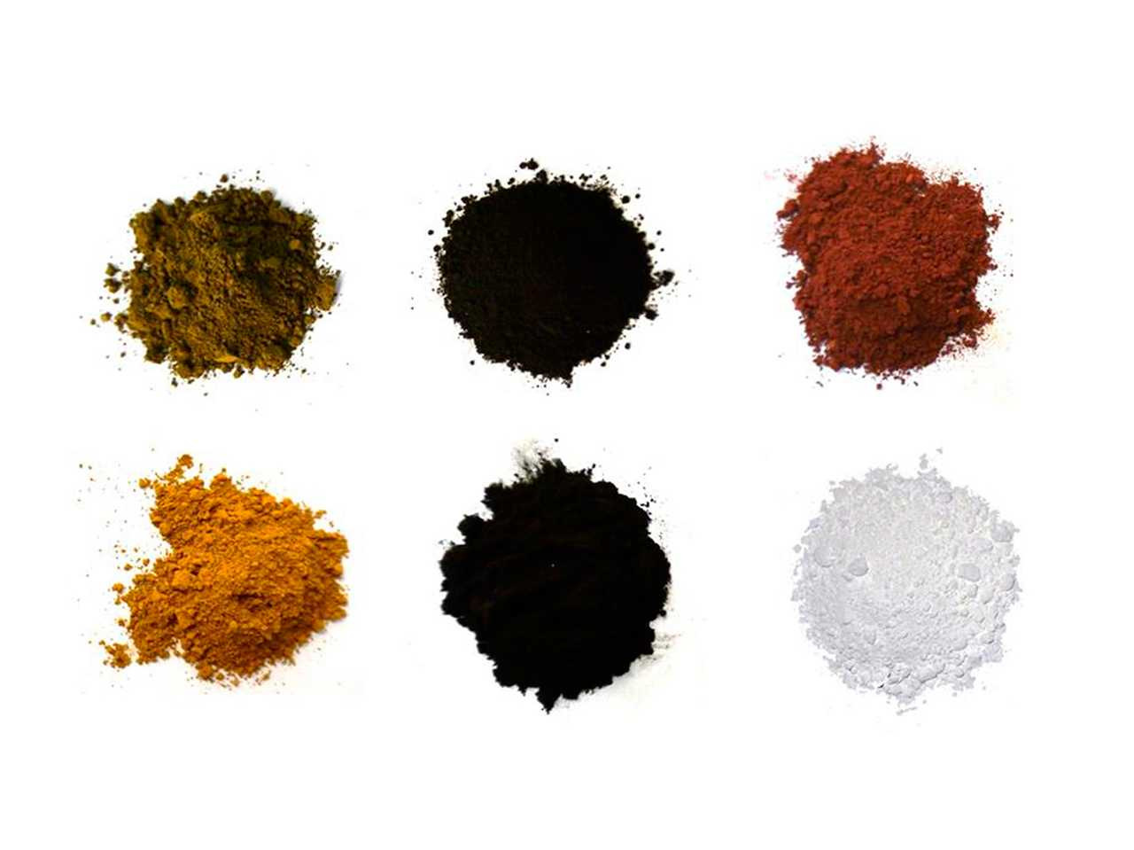 SADA BAREVNÝCH PIGMENTŮ obsahuje tyto pigmenty: Blátivě zelená 5g Tmavě hnědá 4g Rezavě červená 5g Pískově žlutá 5g Temně černá 5g Sněhově bílá 5g