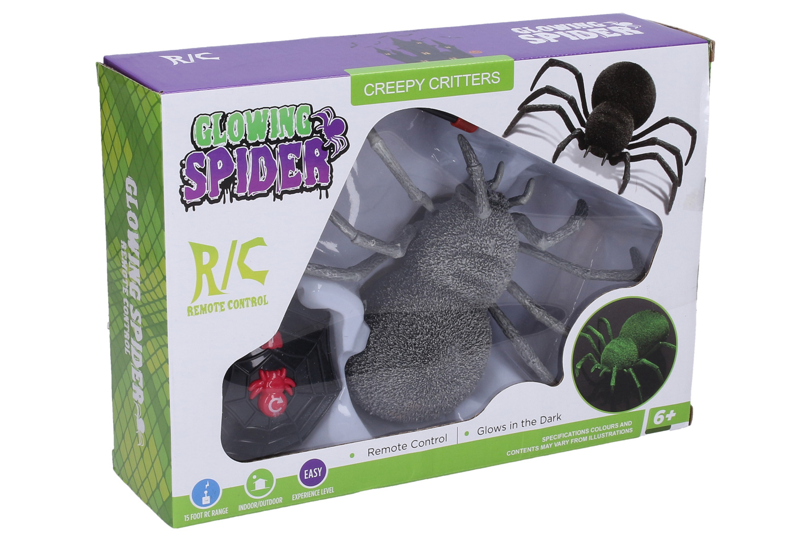 Pavouk RC na dálkové ovládání. Velikost 20 x 13 cm. Svítí ve tmě. Dosah ovladače 4 m. 2 tlačítka, pohyb dopředu a otáčení. Pavouk 2xAAA, ovladač 2xAA nejsou součástí. Rozměry balení: 25,5 x 18,3 x 7 cm. Věk: 6+